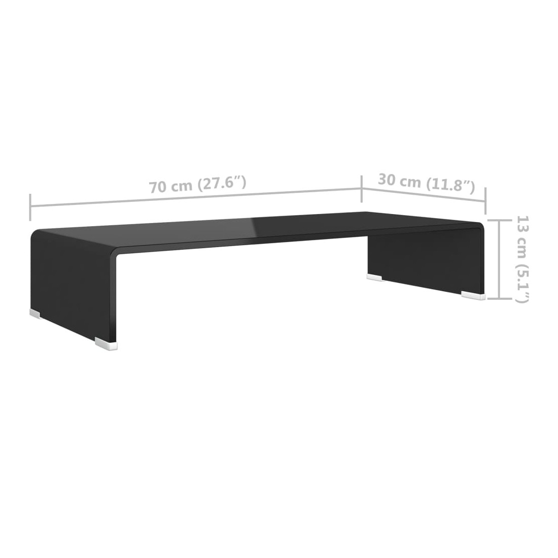 Meuble TV/support pour moniteur 70x30x13 cm verre noir