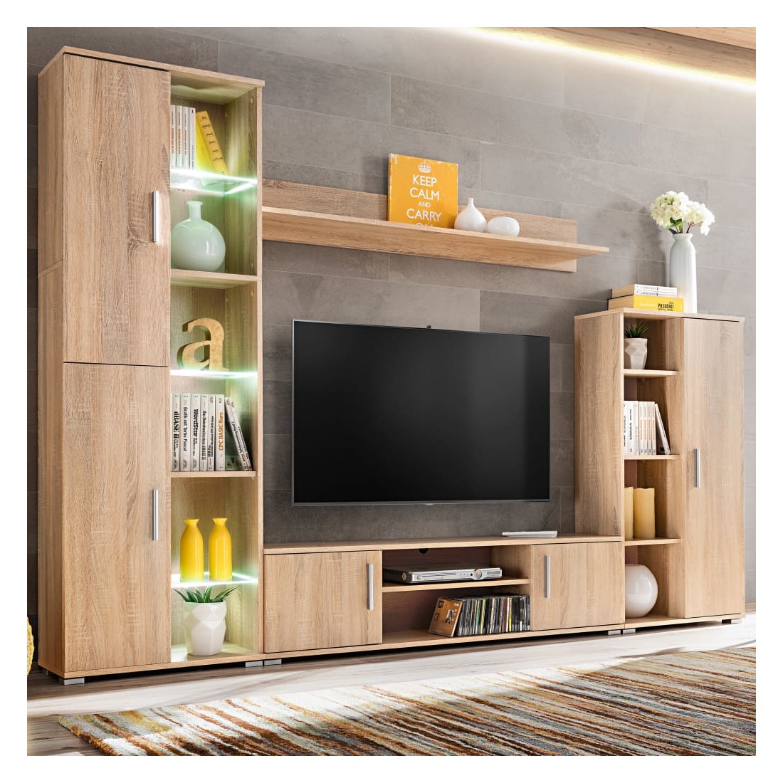 Unité murale TV avec lumières LED Chêne sonoma