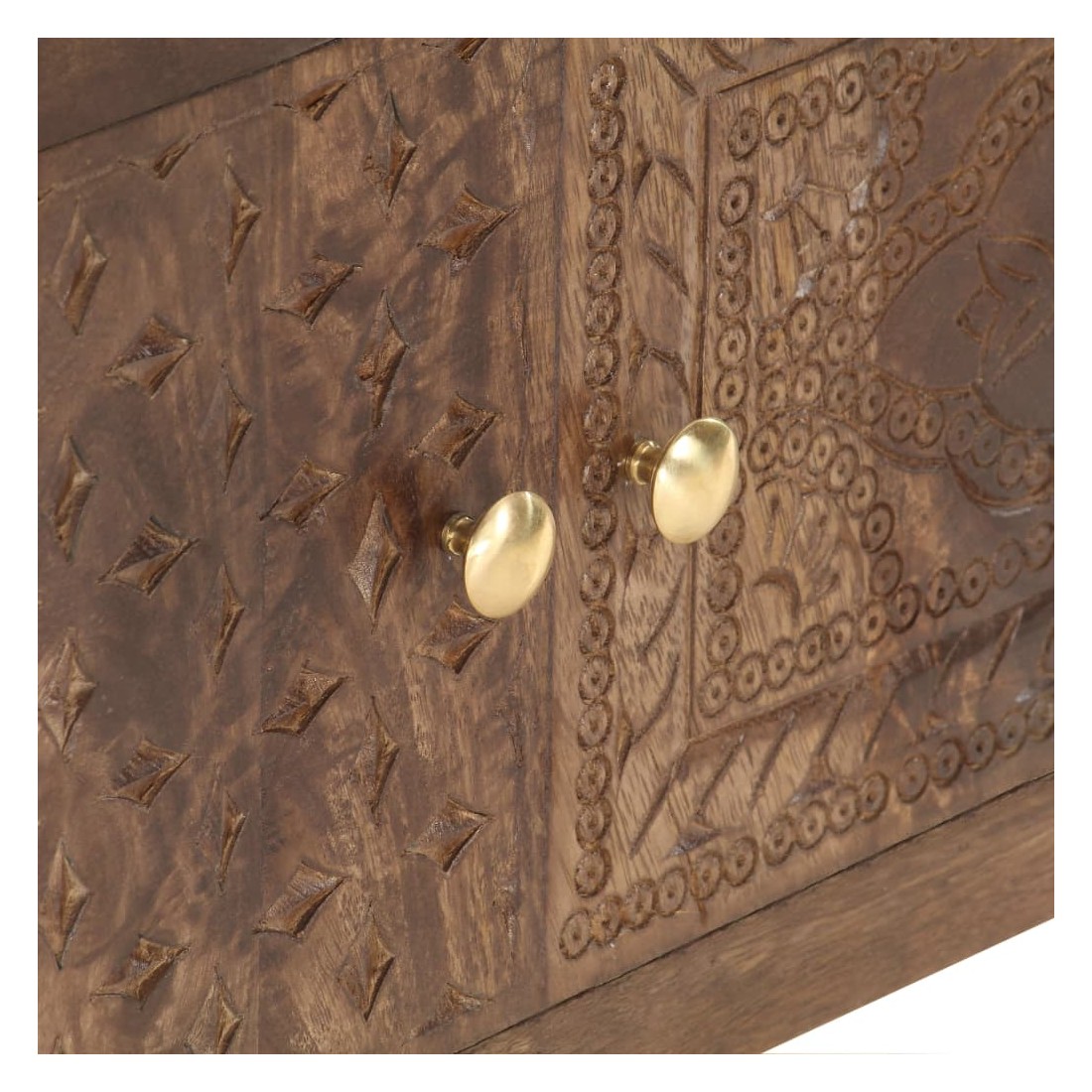 vidaXLApportez le luxe d'un design inspiré du milieu du siècle à votre intérieur avec notre meuble TV élégant en bois ! L'enceinte stéréo, avec des parties sculptées à la main à l'avant, est faite à la main en bois de manguier massif qui est un bois dur dense et robuste avec des belles stries et des contours bruns ou dorés sur sa surface. Chaque étape du processus est réalisée avec le plus grand soin, qu'il s'agisse de polissage ou de laquage, et le savoir-faire ajoute au style rétro spectaculaire. Les beaux grains de bois rendent chaque meuble unique et légèrement différent l'un de l'autre. Le cadre en acier enduit de poudre ajoute au style industriel du buffet. En outre, cette armoire à plasma vintage comprend 2 portes et 2 compartiments, offrant suffisamment d'espace pour garder toutes sortes de petits objets organisés et à portée de main. L'article est facile à assembler. Remarque importante : les couleurs varient d'une pièce à l'autre, rendant chaque pièce unique. La livraison est aléatoire, garantissant l'exclusivité et l'individualité de votre produit.