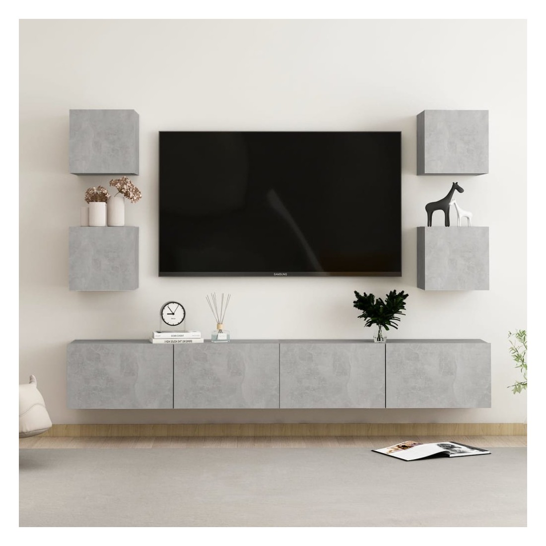 Cet ensemble de meuble TV robuste est destiné à être le point de mire de votre pièce avec un design à la fois tendance et pratique. Le meuble TV est fixé au mur, ce qui en fait un supplément intemporel à votre maison. Il offre de nombreux compartiments de rangement, ce qui en fait un endroit idéal pour stocker tous vos livres, magazines, DVD ou autres objets. Le meuble stéréo est facile à entretenir et à nettoyer avec un chiffon humide.