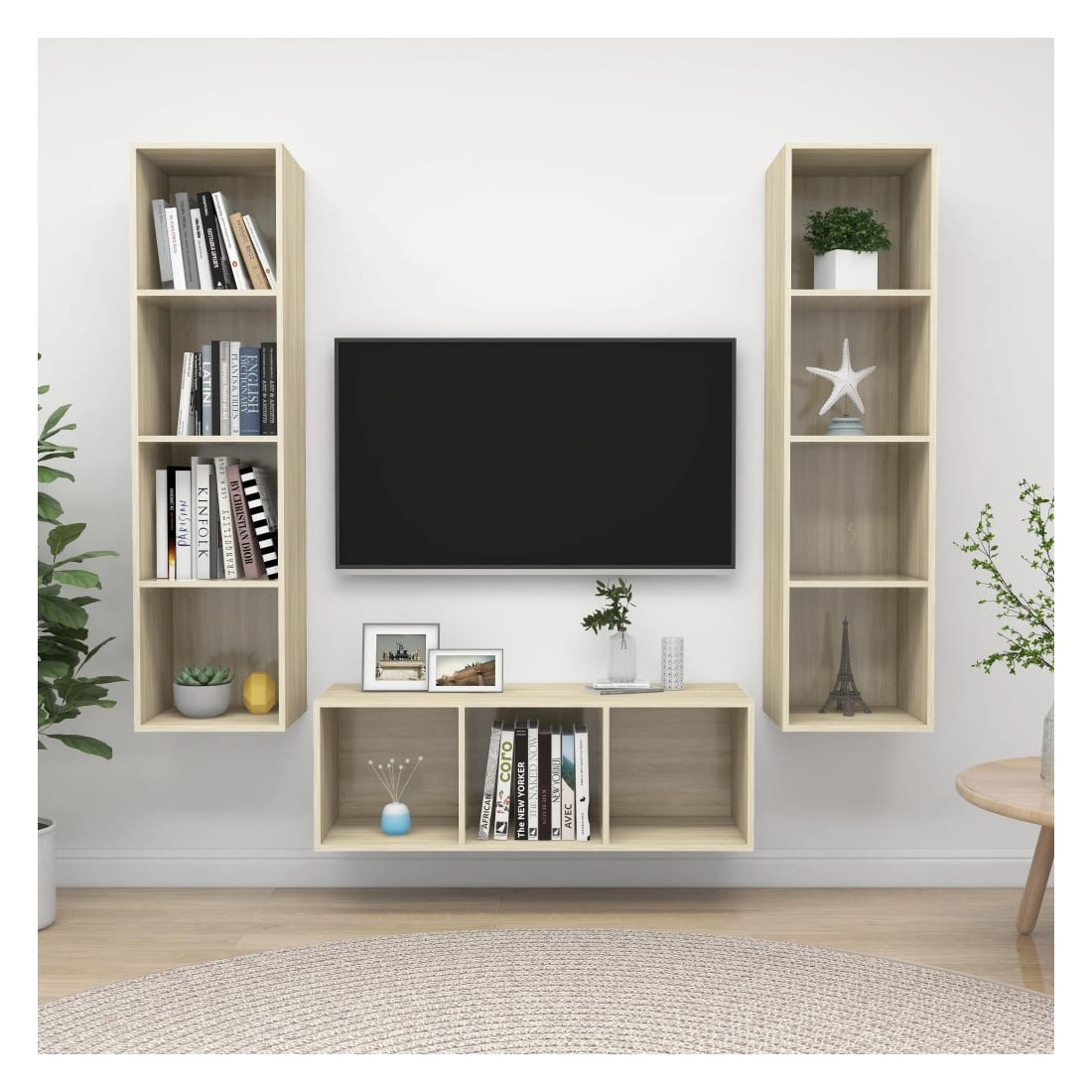 Équipé d'un grand espace de rangement pour organiser divers articles, cet ensemble de meuble TV suspendu sera certainement un supplément pratique et accrocheur dans votre maison. Le meuble TV est fixé au mur, ce qui en fait un supplément intemporel à votre maison. Cet ensemble d’armoire HiFi est idéal pour afficher ou garder bien organisés ou à portée de main tous les articles préférés. De plus, l’ensemble d’armoire stéréo est facile à nettoyer avec un chiffon humide.