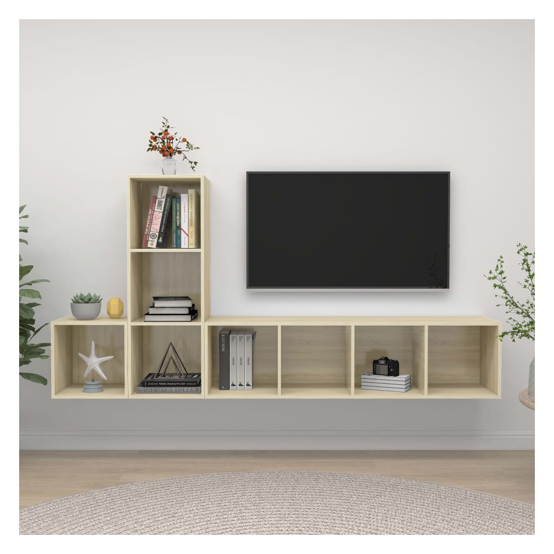 Équipé d'un grand espace de rangement pour organiser divers articles, cet ensemble de meuble TV suspendu sera certainement un supplément pratique et accrocheur dans votre maison. Le meuble TV est fixé au mur, ce qui en fait un supplément intemporel à votre maison. Cet ensemble d’armoire HiFi est idéal pour afficher ou garder bien organisés ou à portée de main tous les articles préférés. De plus, l’ensemble d’armoire stéréo est facile à nettoyer avec un chiffon humide.