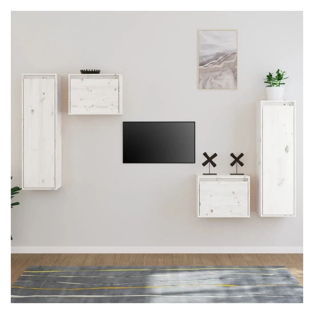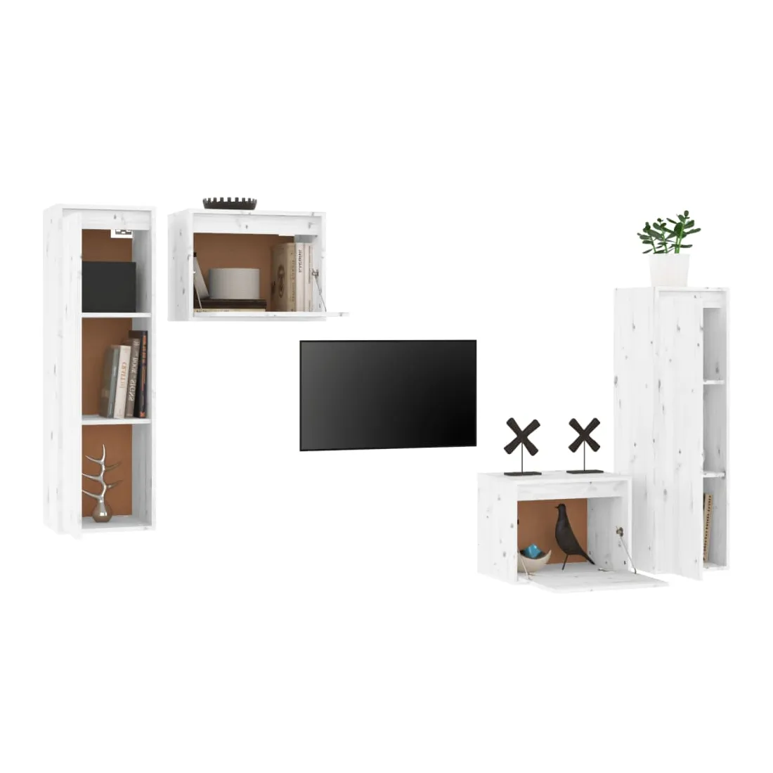 Meubles TV 4 pcs Blanc Bois massif de pin