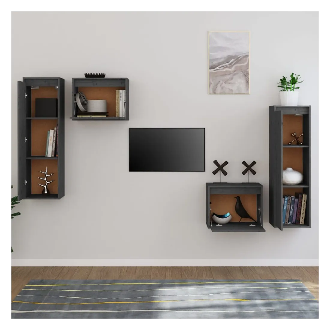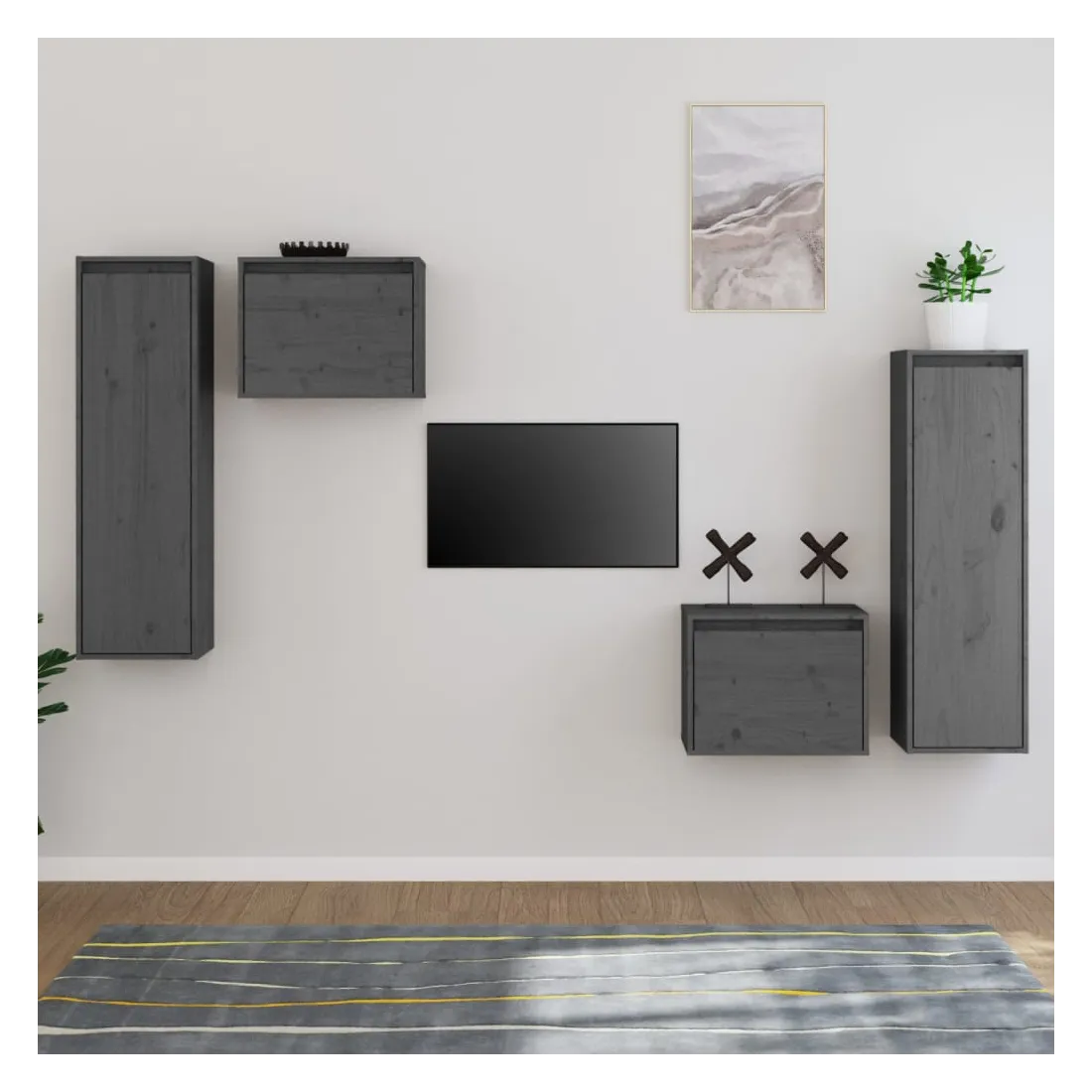 Meubles TV 4 pcs Gris Bois massif de pin