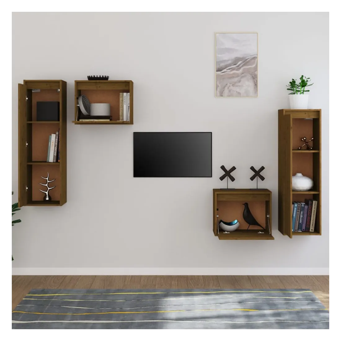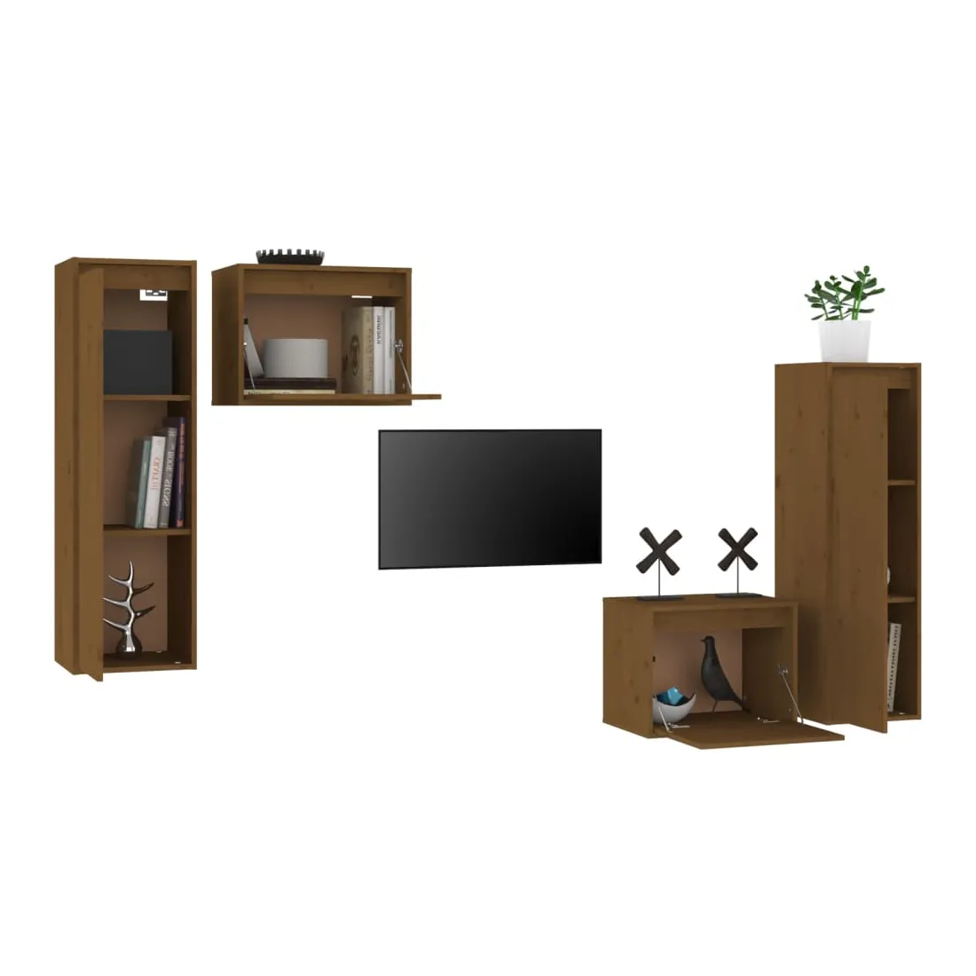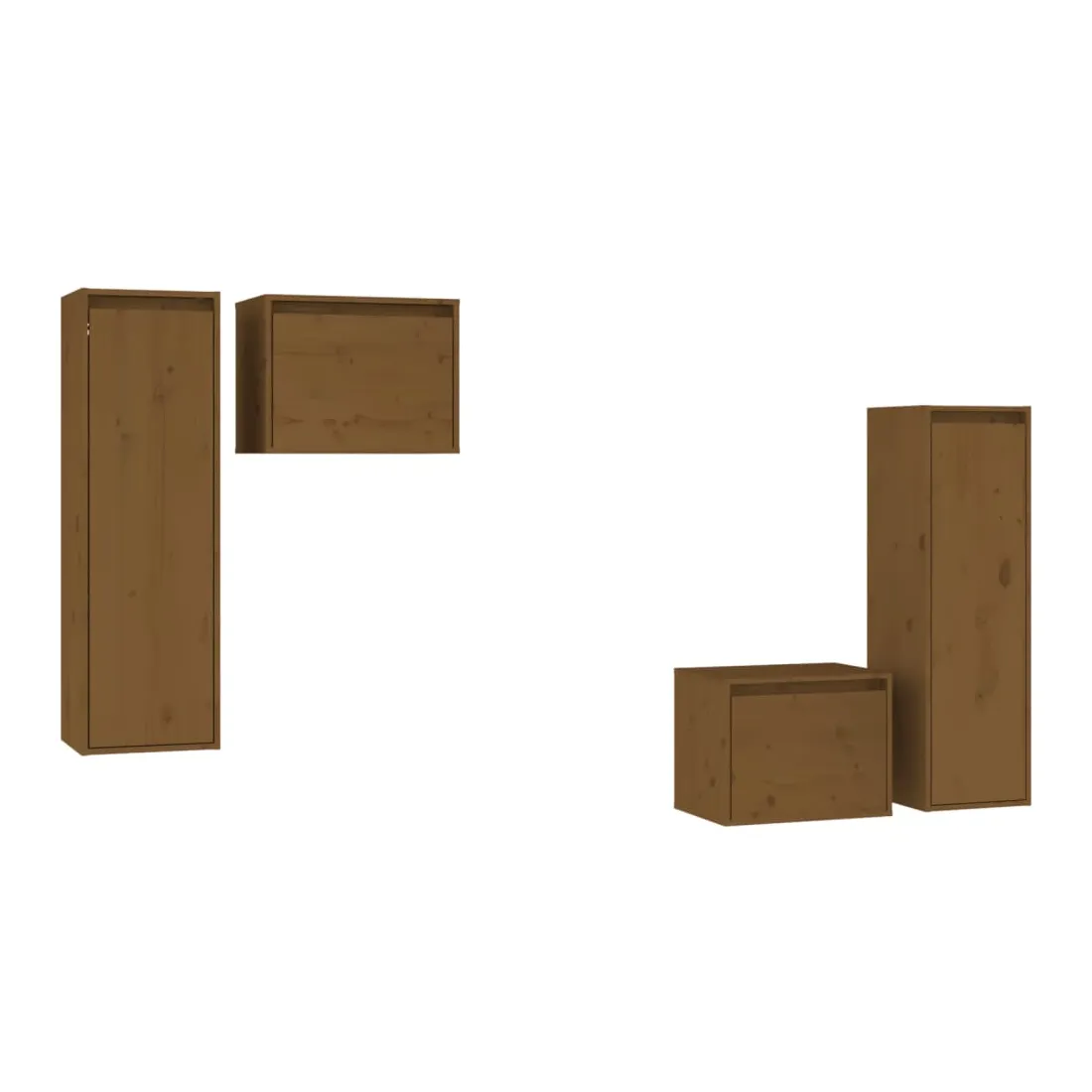 Meubles TV 4 pcs Marron miel Bois massif de pin