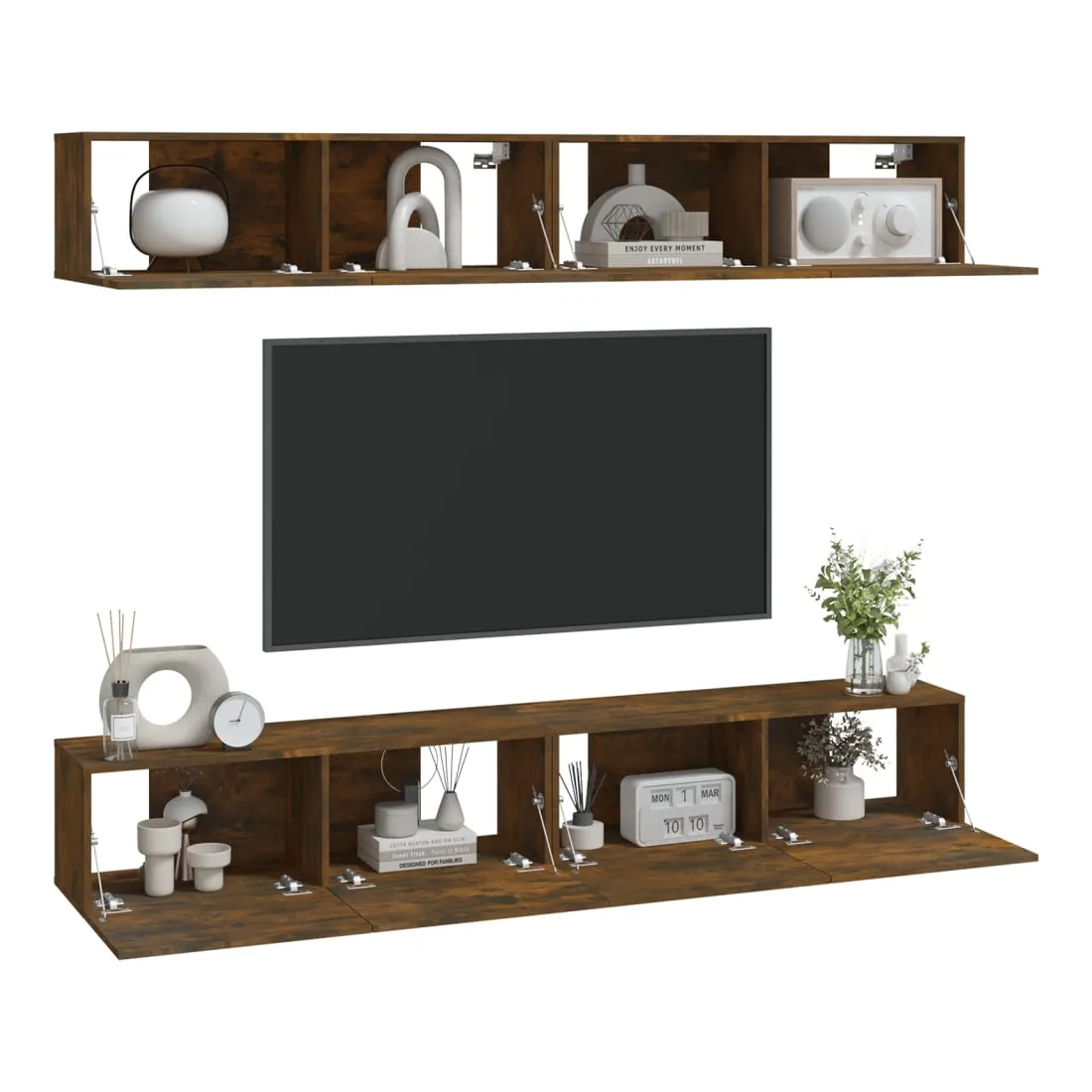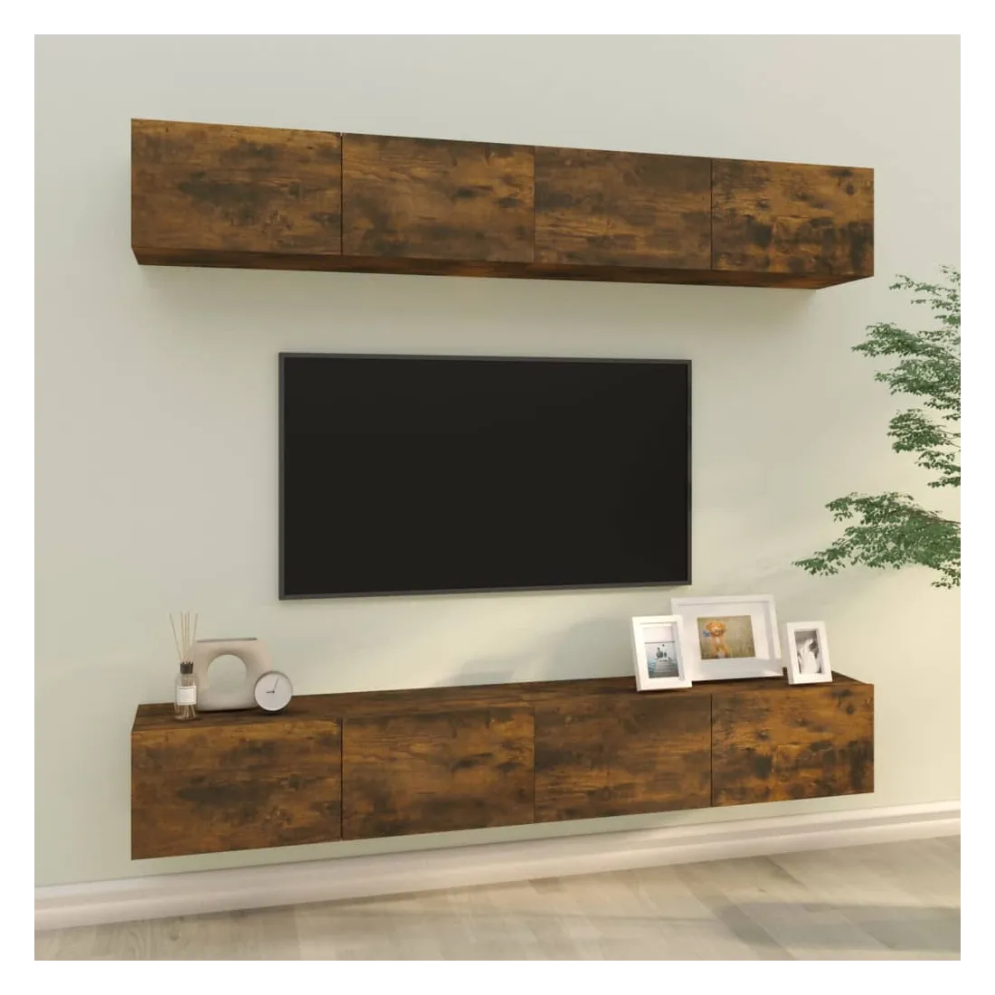 Meubles TV muraux 4 pcs chêne fumé 100x30x30 cm