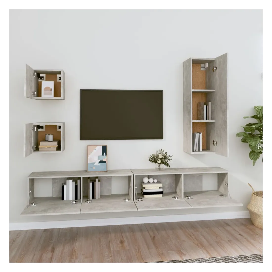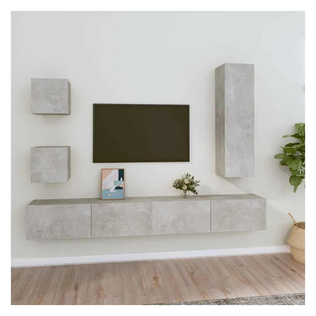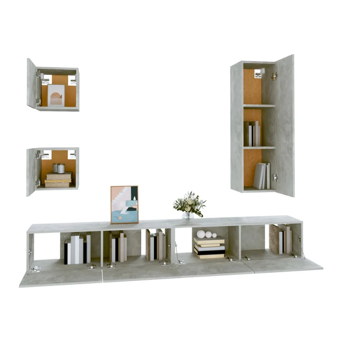 Ensemble de meubles TV 5 pcs Gris béton Bois d'ingénierie