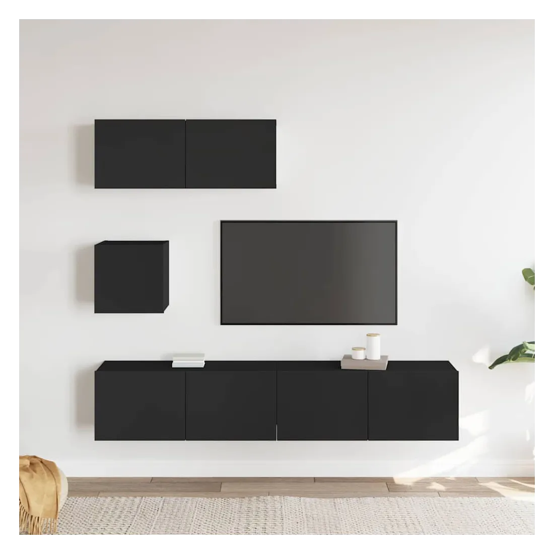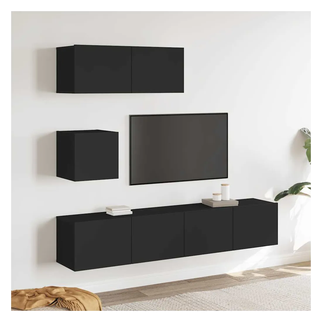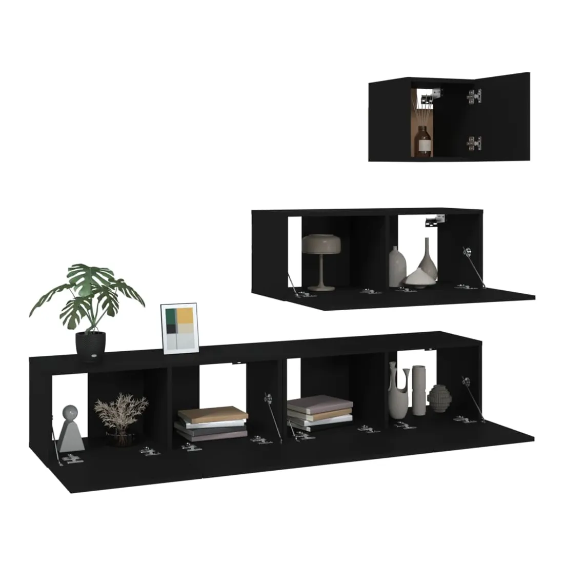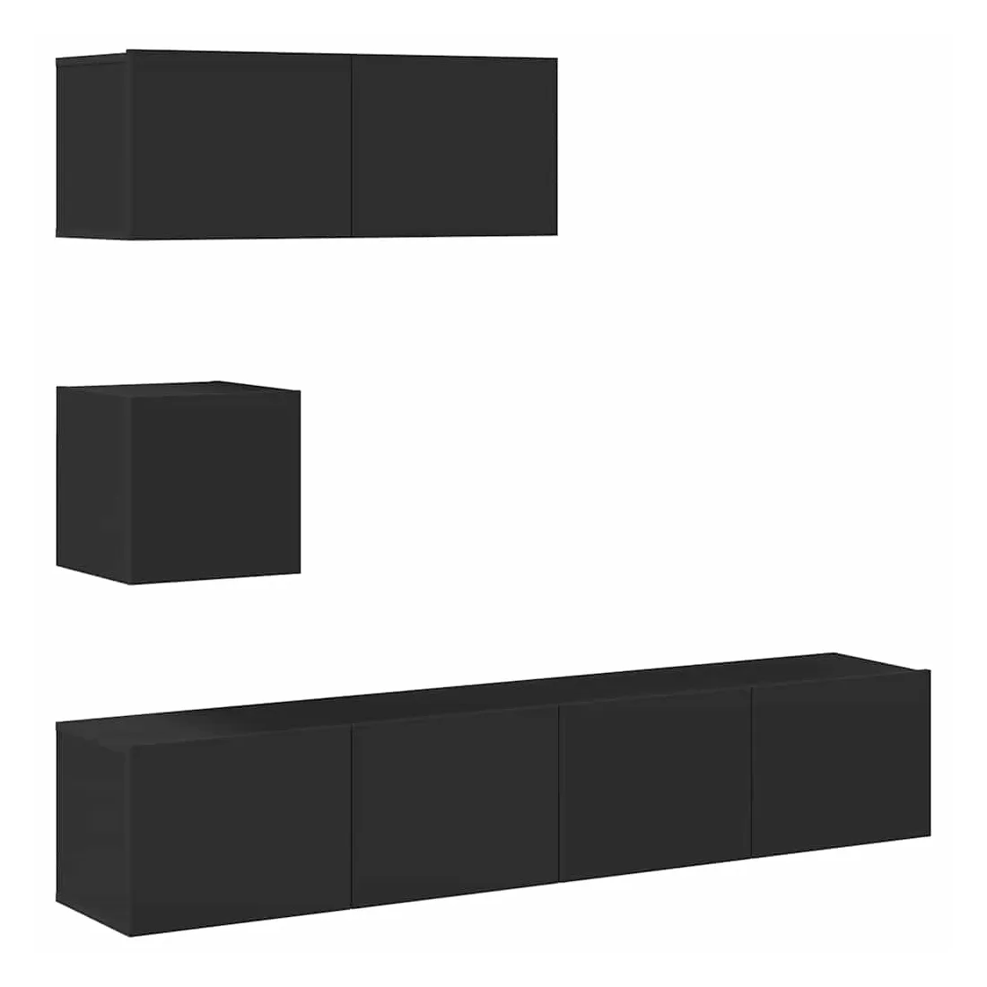 Ensemble de meubles TV 4 pcs Noir Bois d'ingénierie