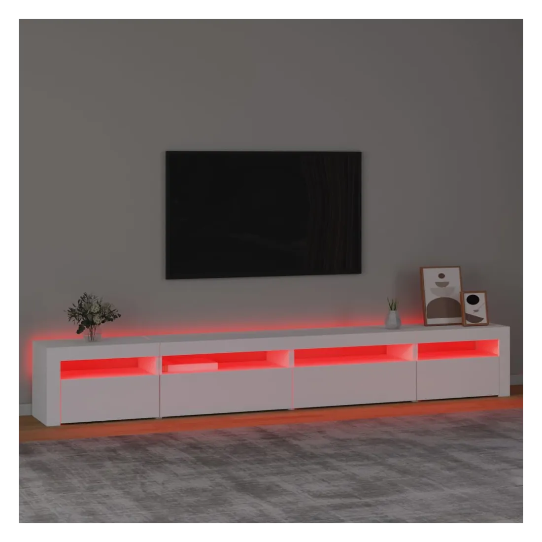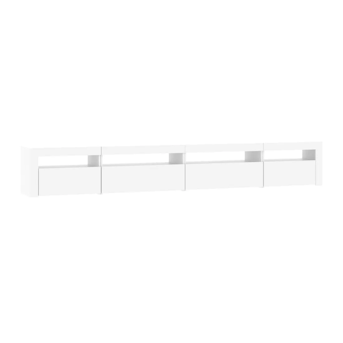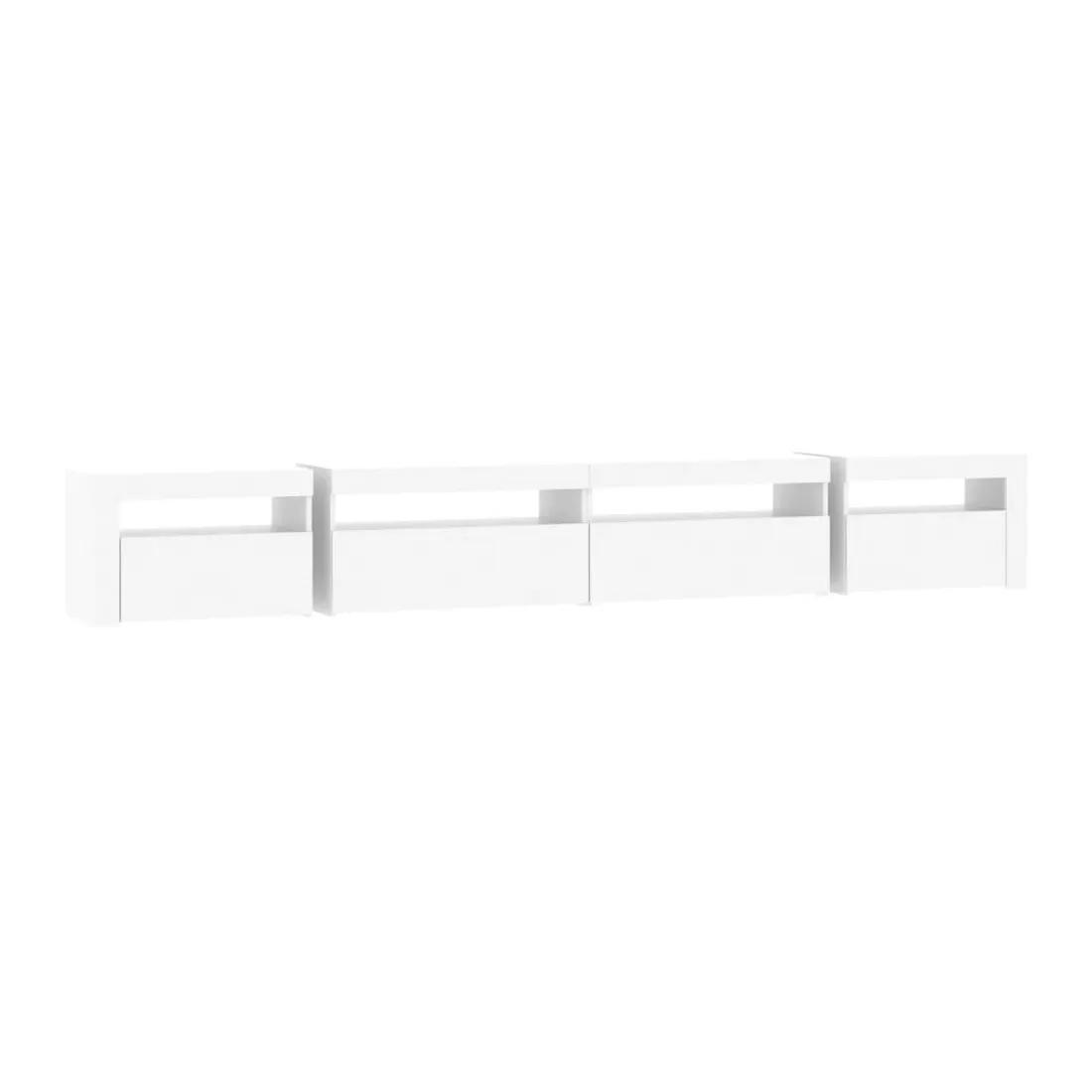 Avec un design à la fois tendance et pratique, ce meuble TV avec éclairage LED deviendra certainement un point central de votre pièce. Matériau pratique : le bois d'ingénierie est d'une qualité exceptionnelle avec une surface lisse et présente également résistance, stabilité et résistance à l'humidité. Lumières LED colorées : le meuble TV est doté de lumières LED RVB, qui ont différents menus pour changer la couleur des lumières et laisser la couleur s'ajuster automatiquement. Les lumières LED soulignent l'aspect moderne et contribuent à la sensation de tendance.Grand espace de rangement : le meuble TV offre un grand espace de rangement pour garder vos magazines, livres, télécommandes et autres petits objets bien organisés et à portée de main.Fonction d'affichage : le dessus robuste du meuble média est idéal pour exposer des objets décoratifs, des cadres photo et des plantes en pot. Remarque :Ce produit est doté d'un connecteur USB, mais la source d'alimentation certifiée de USB 5V n'est pas incluse.Chaque produit est livré avec un manuel de montage dans la boîte pour un montage facile.