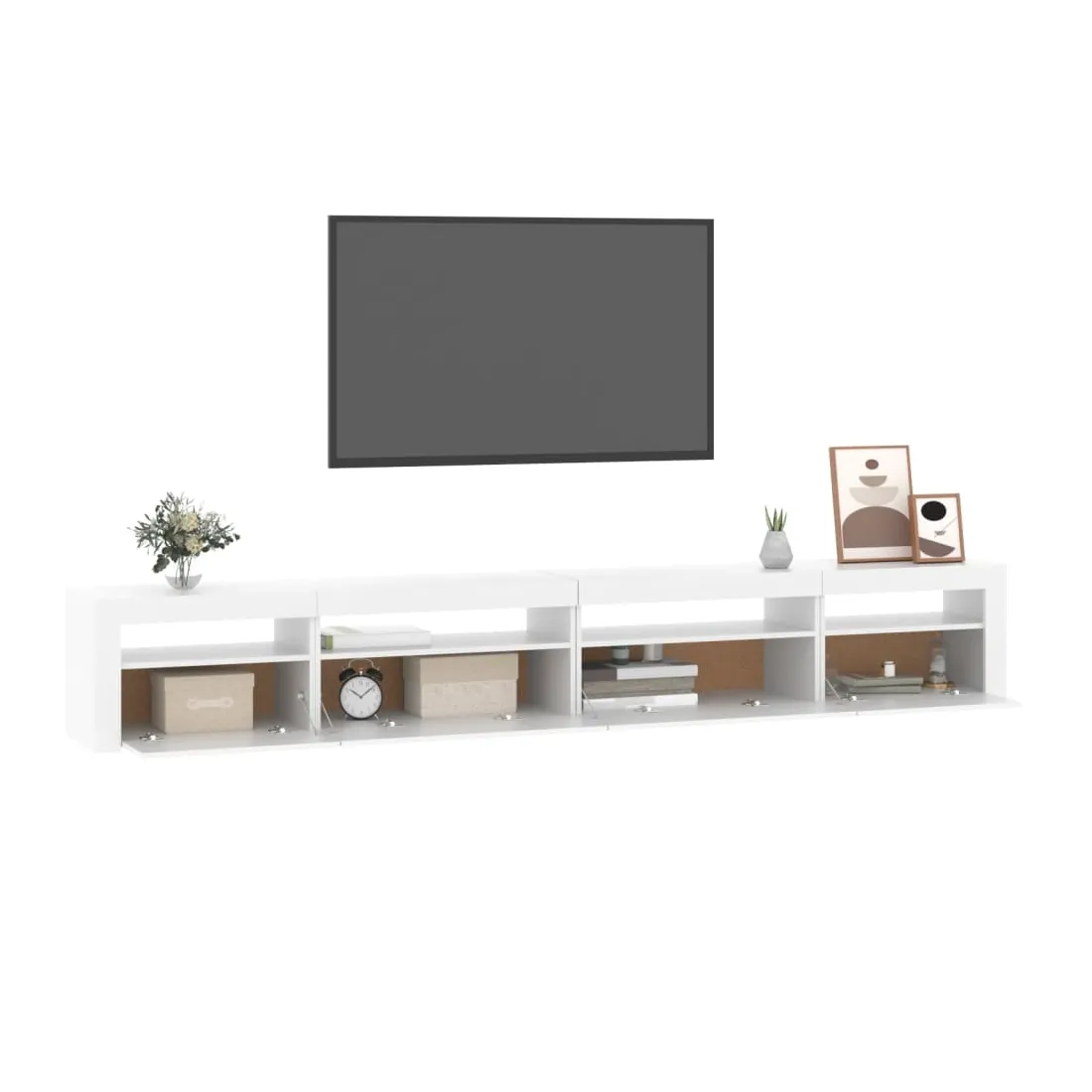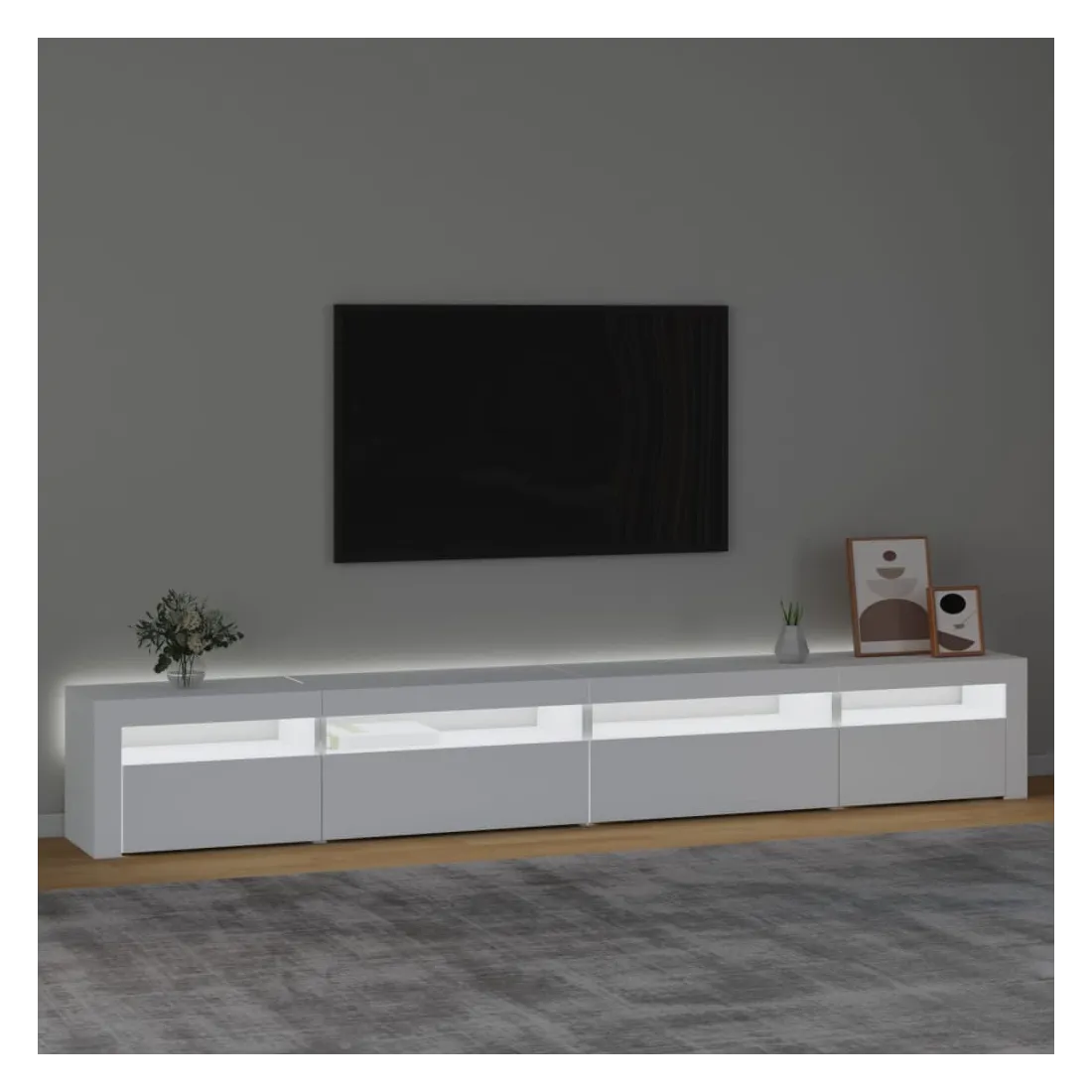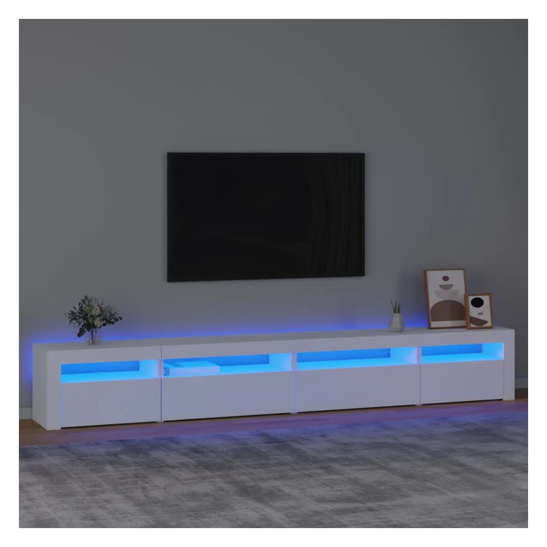 Avec un design à la fois tendance et pratique, ce meuble TV avec éclairage LED deviendra certainement un point central de votre pièce. Matériau pratique : le bois d'ingénierie est d'une qualité exceptionnelle avec une surface lisse et présente également résistance, stabilité et résistance à l'humidité. Lumières LED colorées : le meuble TV est doté de lumières LED RVB, qui ont différents menus pour changer la couleur des lumières et laisser la couleur s'ajuster automatiquement. Les lumières LED soulignent l'aspect moderne et contribuent à la sensation de tendance.Grand espace de rangement : le meuble TV offre un grand espace de rangement pour garder vos magazines, livres, télécommandes et autres petits objets bien organisés et à portée de main.Fonction d'affichage : le dessus robuste du meuble média est idéal pour exposer des objets décoratifs, des cadres photo et des plantes en pot. Remarque :Ce produit est doté d'un connecteur USB, mais la source d'alimentation certifiée de USB 5V n'est pas incluse.Chaque produit est livré avec un manuel de montage dans la boîte pour un montage facile.