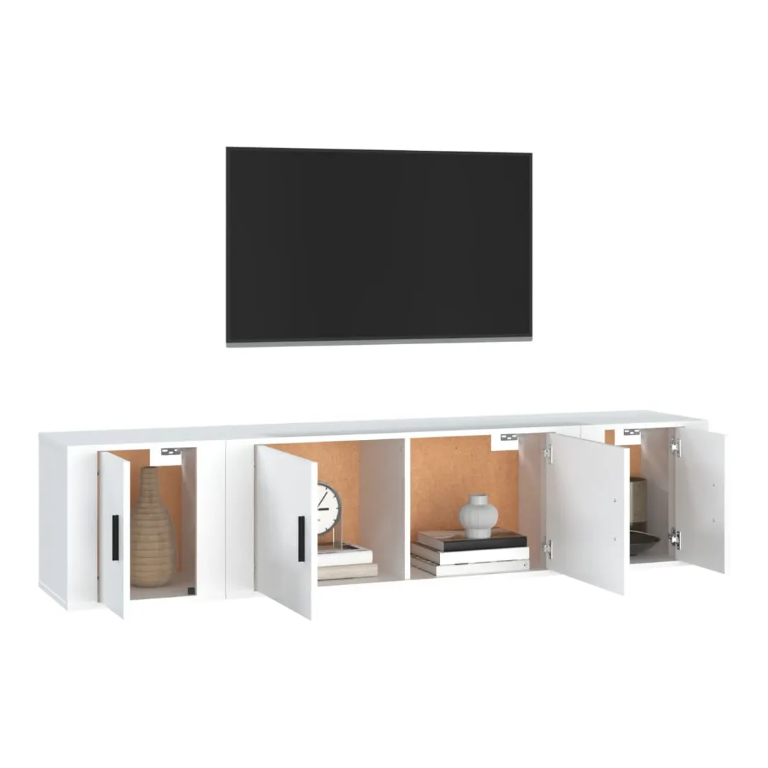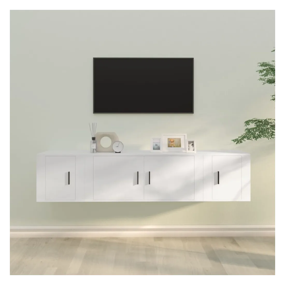Cet ensemble de meubles TV classique est conçu pour être le point central de votre pièce, avec un design à la fois tendance et pratique. Matériau robuste : le bois d'ingénierie est d'une qualité exceptionnelle avec une surface lisse et présente également résistance, stabilité et résistance à l'humidité. Fabriqués en bois d'ingénierie, ces meubles TV sont faciles à nettoyer.Grand espace de rangement : ces meubles TV offrent un grand espace de rangement pour garder tous vos magazines, DVD et autres articles bien organisés.Fonction murale : ces armoires multimédias ne prennent pas de place au sol. Vous pouvez facilement les accrocher au mur.Portes pratique : gardez vos essentiels à l'abri de la poussière en les cachant derrière les portes des meubles multimédia. Bon à savoir :Pour faciliter au maximum le montage, chaque produit est livré avec des instructions.Les vis et les chevilles pour l'intérieur du mur ne sont pas incluses. Nous vous conseillons de trouver et d'utiliser des vis et des chevilles adaptées spécifiquement à vos murs. Si vous n'êtes pas sûr, vous pouvez consulter un professionnel. Veuillez lire et suivre chaque étape des instructions.