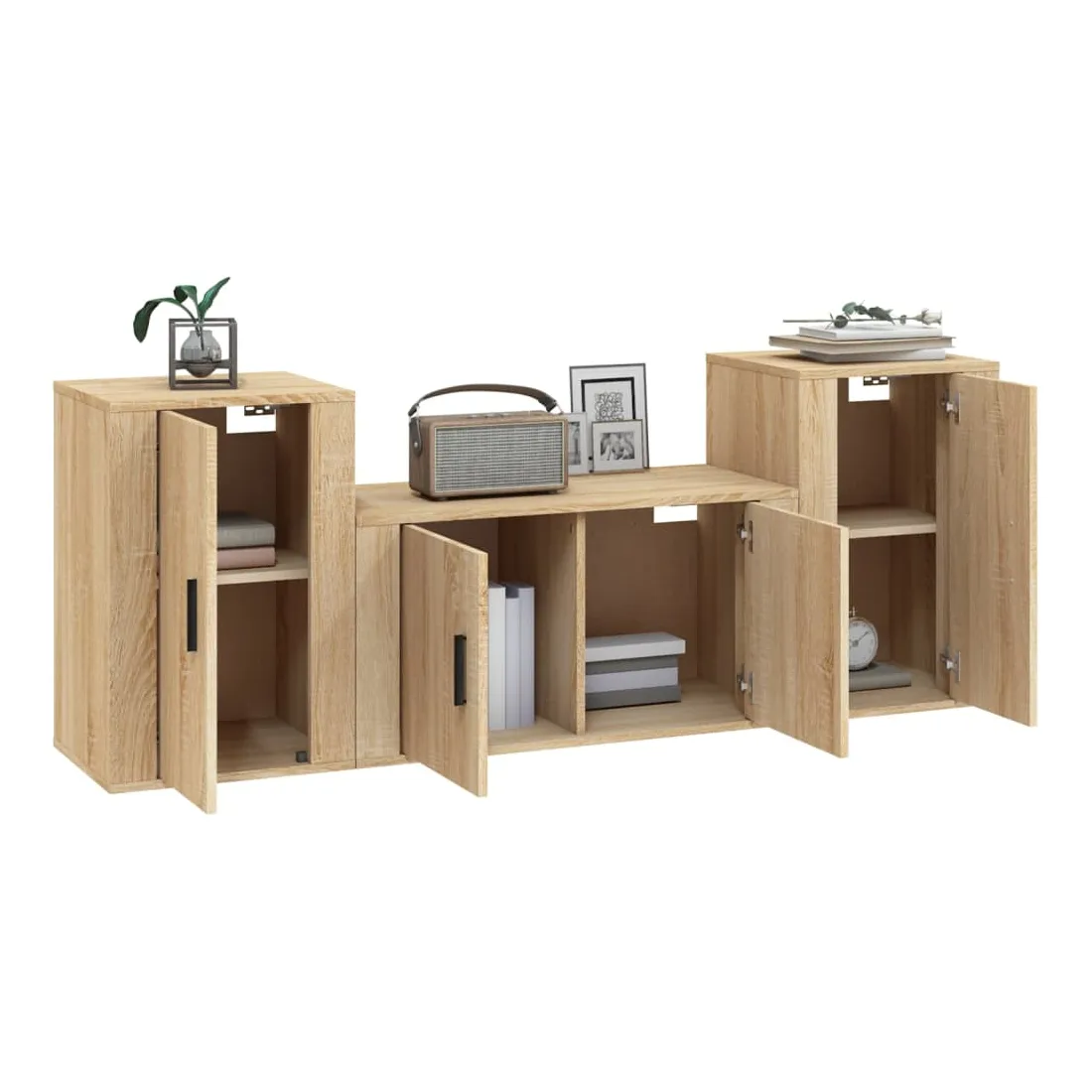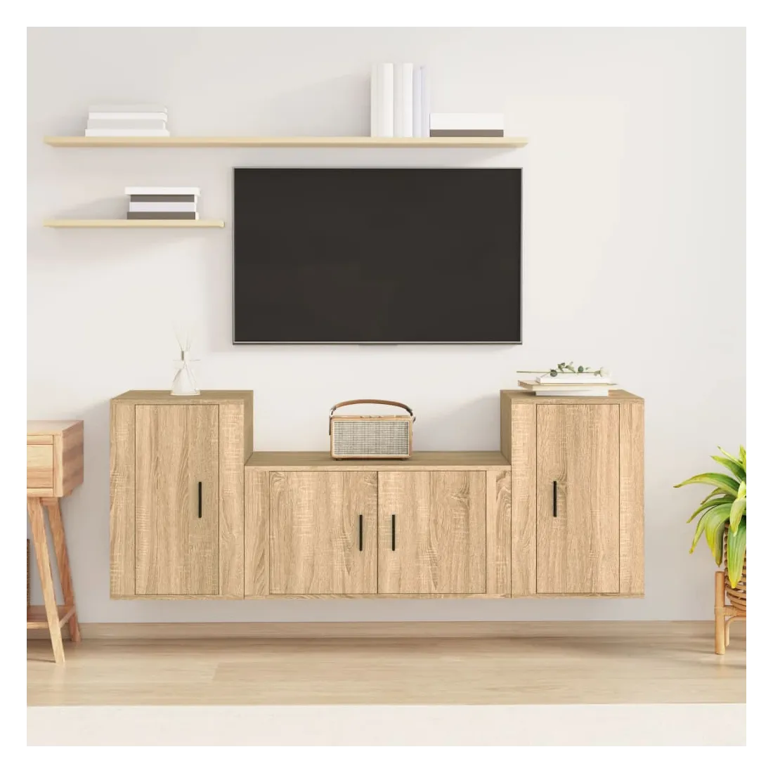 Cet ensemble de meubles TV classique est conçu pour être le point central de votre pièce, avec un design à la fois tendance et pratique. Matériau robuste : le bois d'ingénierie est d'une qualité exceptionnelle avec une surface lisse et présente également résistance, stabilité et résistance à l'humidité.Grand espace de rangement : l'ensemble de meubles TV offre un grand espace de rangement pour garder tous vos magazines, DVD et autres articles bien organisés.Design mural : le meuble TV ne prend pas de place au sol. Vous pouvez l'accrocher au mur facilement. Bon à savoir :Pour faciliter au maximum le montage, chaque produit est livré avec des instructions.Les vis et les chevilles pour l'intérieur du mur ne sont pas incluses. Nous vous conseillons de trouver et d'utiliser des vis et des chevilles adaptées spécifiquement à vos murs. Si vous n'êtes pas sûr, vous pouvez consulter un professionnel. Veuillez lire et suivre chaque étape des instructions.