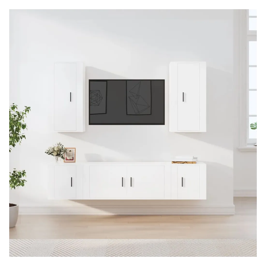 Cet ensemble de meubles TV classique est conçu pour être le point central de votre pièce, avec un design à la fois tendance et pratique. Matériau robuste : le bois d'ingénierie est d'une qualité exceptionnelle avec une surface lisse et présente également résistance, stabilité et résistance à l'humidité.Grand espace de rangement : l'ensemble de meubles TV offre un grand espace de rangement pour garder tous vos magazines, DVD et autres articles bien organisés.Design mural : le meuble TV ne prend pas de place au sol. Vous pouvez l'accrocher au mur facilement. Bon à savoir :Pour faciliter au maximum le montage, chaque produit est livré avec des instructions.Les vis et les chevilles pour l'intérieur du mur ne sont pas incluses. Nous vous conseillons de trouver et d'utiliser des vis et des chevilles adaptées spécifiquement à vos murs. Si vous n'êtes pas sûr, vous pouvez consulter un professionnel. Veuillez lire et suivre chaque étape des instructions.