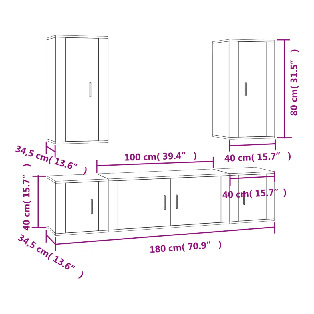 - 2 x meuble TV : 40 x 34,5 x 80 cm (L x l x H)