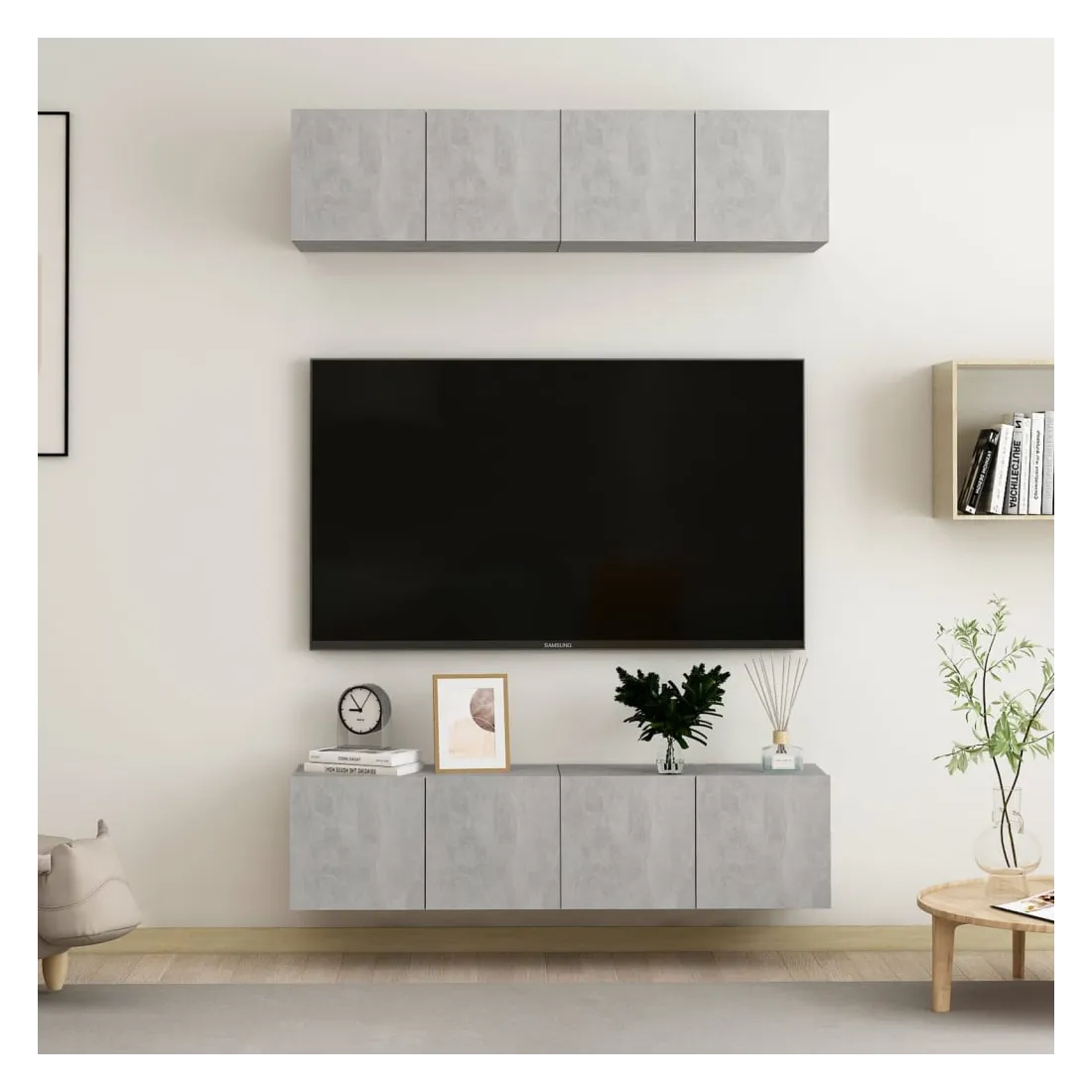 Cet ensemble de meuble TV robuste est destiné à être le point de mire de votre pièce avec un design à la fois tendance et pratique. Le meuble TV est fixé au mur, ce qui en fait un supplément intemporel à votre maison. Il offre de nombreux compartiments de rangement, ce qui en fait un endroit idéal pour stocker tous vos livres, magazines, DVD ou autres objets. Le meuble stéréo est facile à entretenir et à nettoyer avec un chiffon humide.