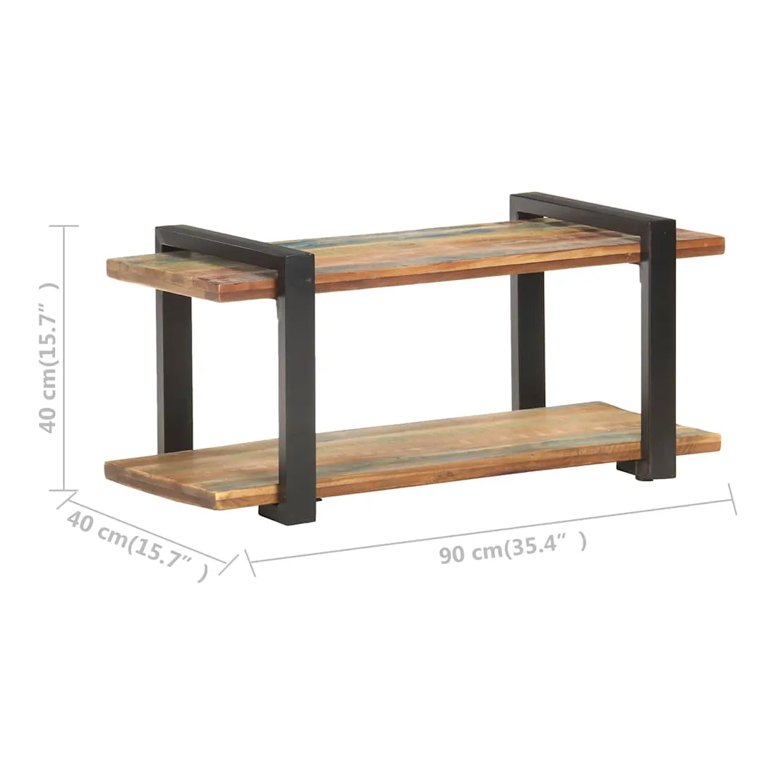 - Matériau : bois de récupération solide avec une finition de couleur mélangée, fer enduit de poudre