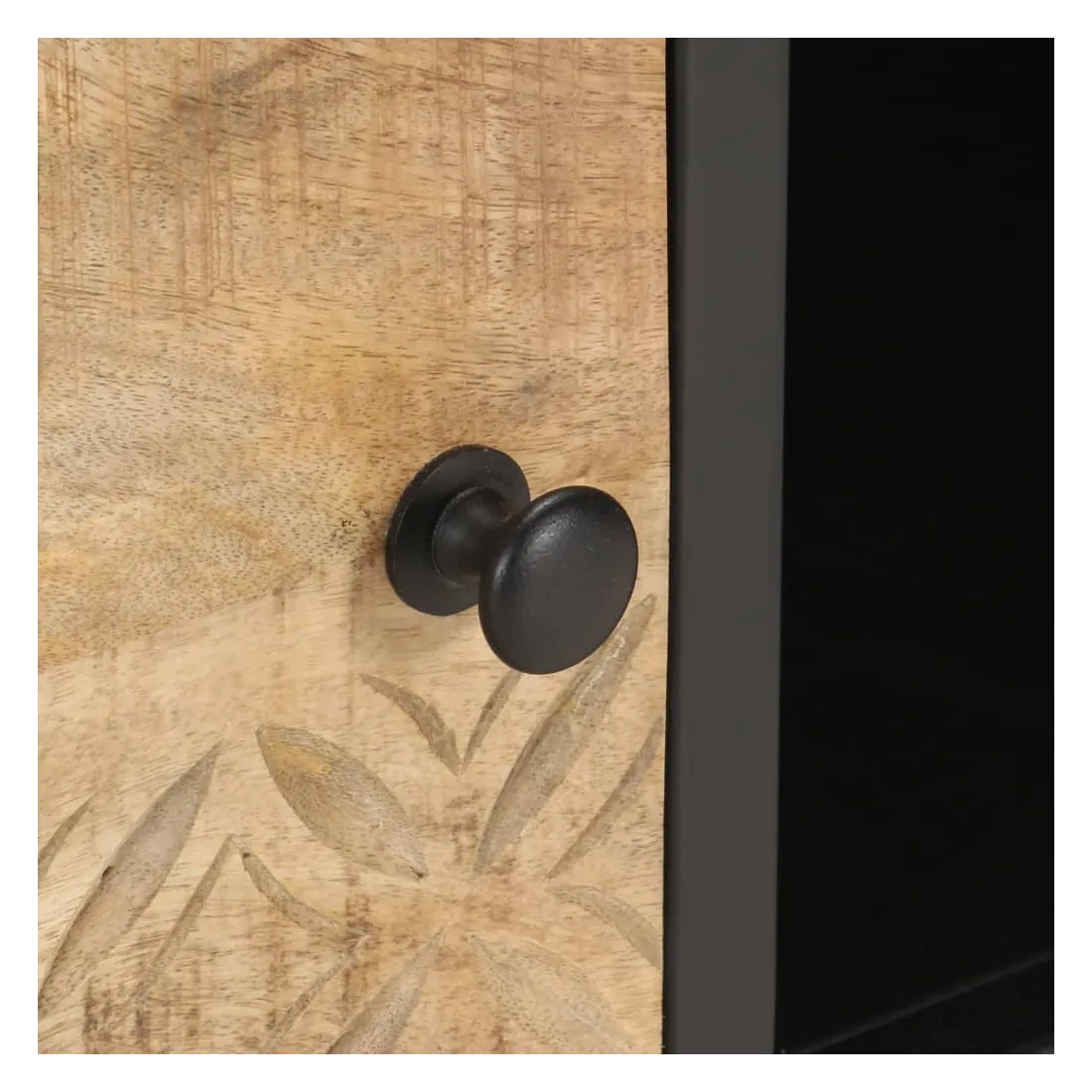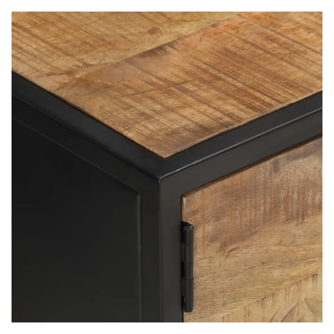 - Matériau : bois de manguier brut avec finition naturelle, fer enduit de poudre