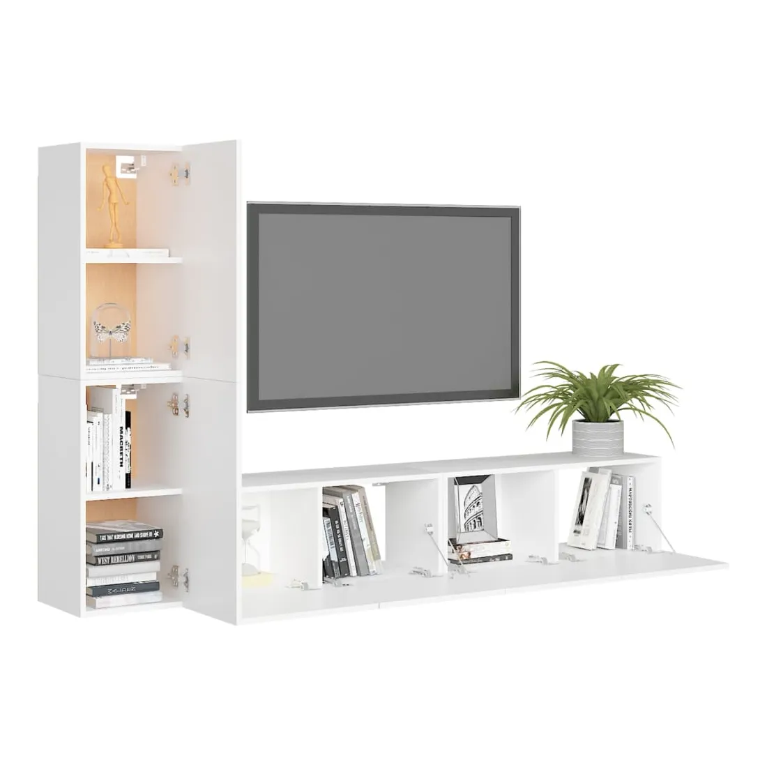 Équipé d'un grand espace de rangement pour organiser divers articles, cet ensemble de meuble TV suspendu sera certainement un supplément pratique et accrocheur dans votre maison. Le meuble TV est fixé au mur, ce qui en fait un supplément intemporel à votre maison. Cet ensemble d’armoire HiFi est idéal pour afficher ou garder bien organisés ou à portée de main tous les articles préférés. De plus, l’ensemble d’armoire stéréo est facile à nettoyer avec un chiffon humide.