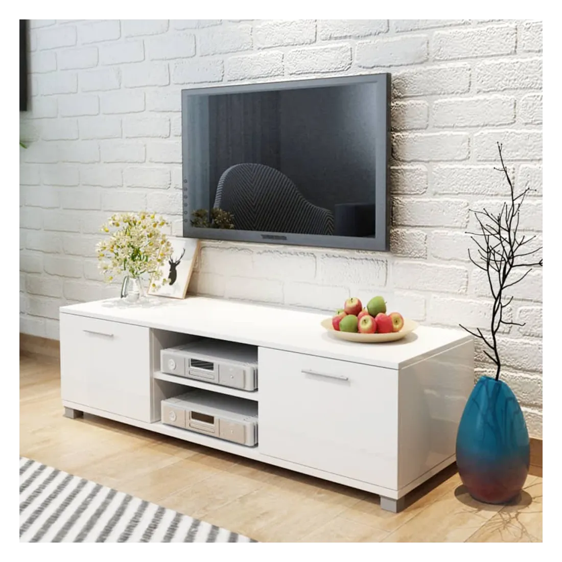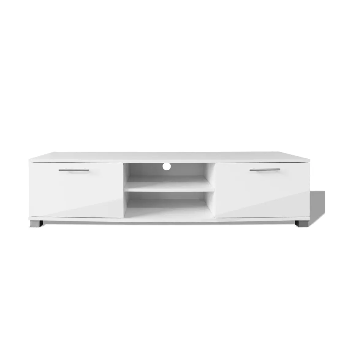 Ce support TV à haute brillance deviendra le point central de votre salon ou de votre espace de divertissement. Il a beaucoup d'espace de stockage et le design spacieux s'adapte très bien. Sa construction robuste rend le support très durable. La finition à haute brillance donne à la pièce un aspect élégant qui conviendra à tout décor. Les grands compartiments et les étagères avec un espace de rangement suffisant vous permettent de garder votre lecteur de DVD, console de jeux, périphérique de diffusion et supports de médias soigneusement rangés. En outre, vous pouvez facilement garder les câbles hors de vue grâce aux 4 sorties de câble. Avec notre meuble à haute brillance, vous pouvez créer un centre de divertissement élégant et moderne !