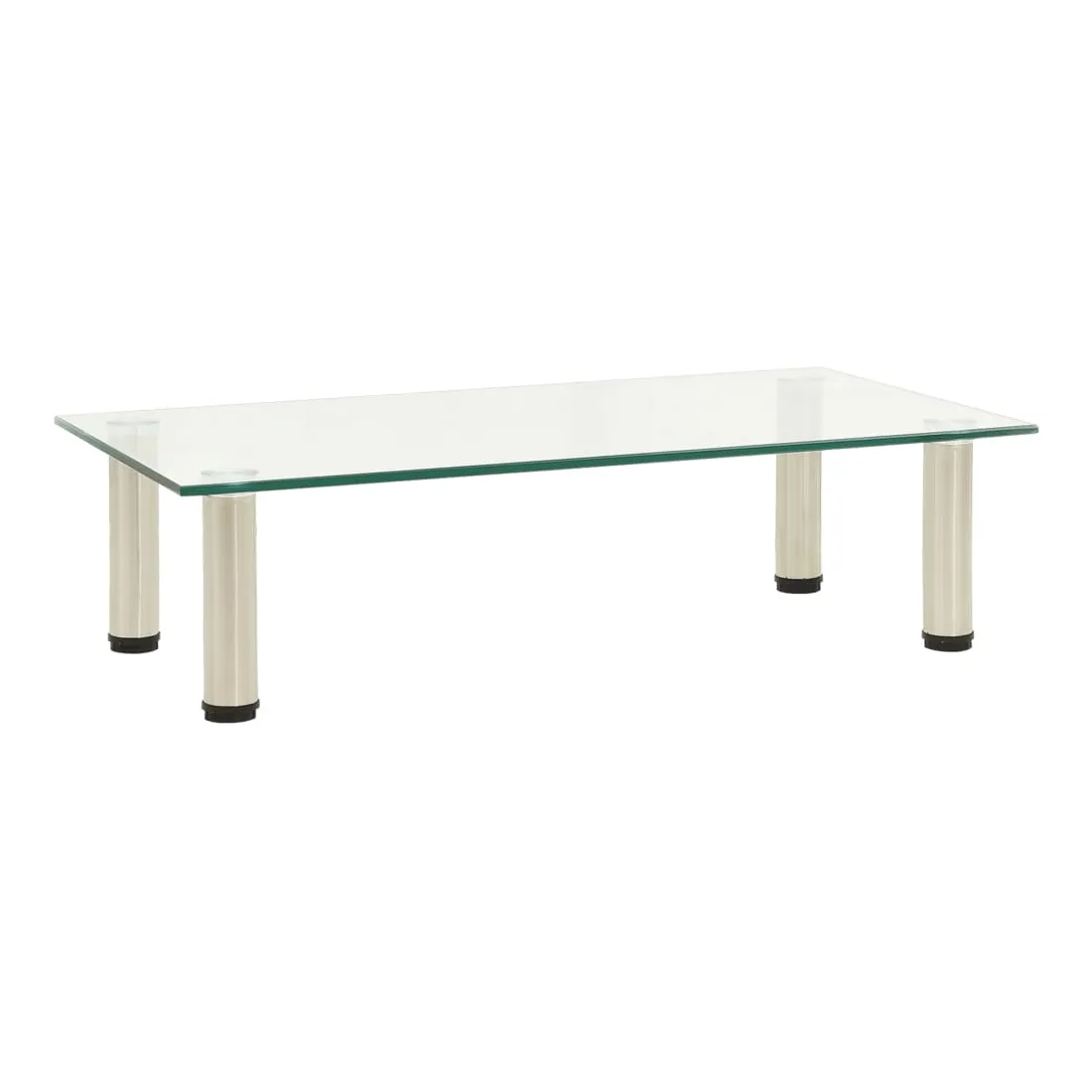 Ce meuble TV contemporain en verre trempé ajoute une touche moderne à votre salon et à votre chambre à coucher. Cette table de télévision est fabriquée en verre trempé épais et en acier inoxydable résistant, ce qui la rend extrêmement solide et sûre. Le dessus de table solide peut être utilisé pour placer la télévision, l'ordinateur portable et d'autres dispositifs multimédias. Vous pouvez également mettre vos boissons, vases et autres petits objets. De plus, la surface lisse est facile à nettoyer avec un simple chiffon humide.