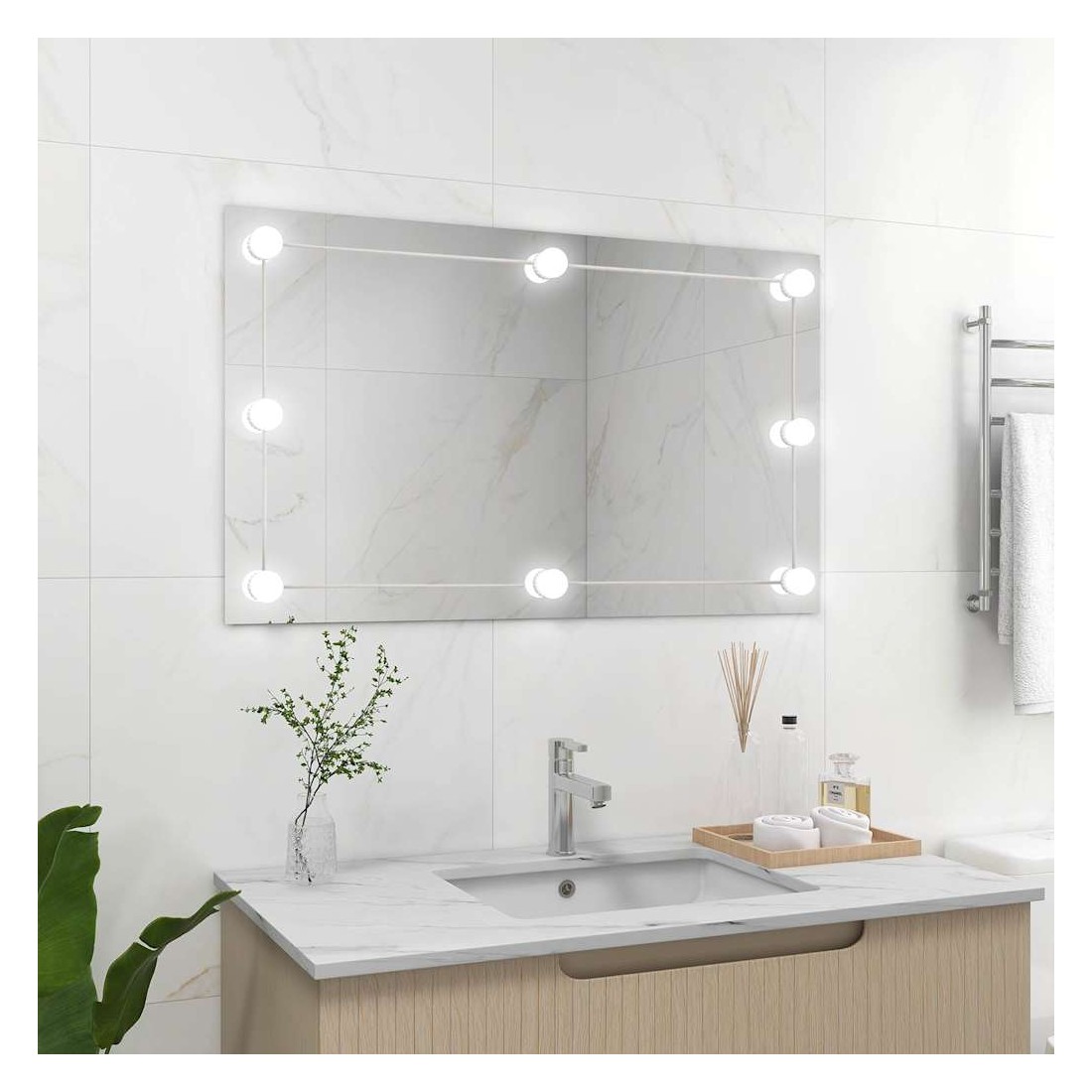 Miroir mural sans cadre avec lampes LED Rectangulaire Verre
