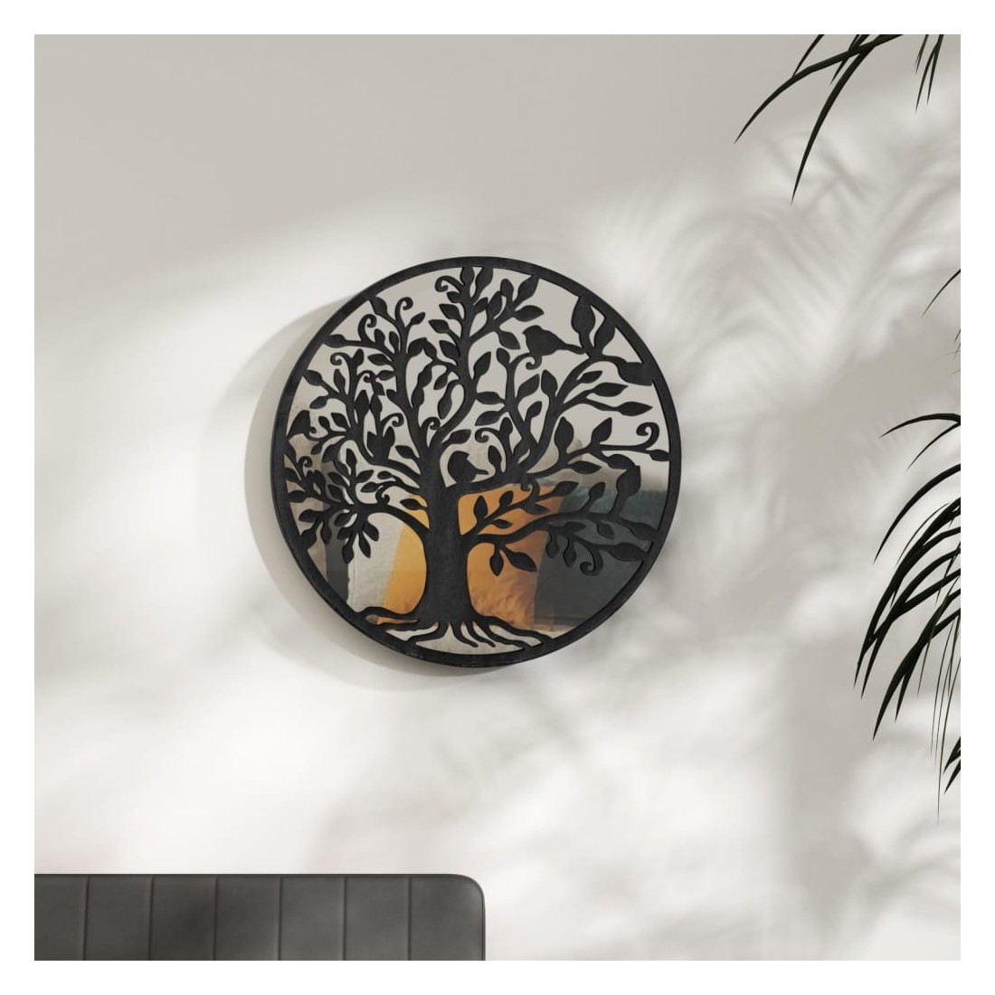 Ce miroir rond est idéal pour ajouter de la lumière dans un coin sombre ou créer un point de mire intéressant. Cadre stable et robuste : le cadre de miroir d'intérieur est en fer, ce qui le rend durable et stable.Utilisation multiple : il peut être utilisé pour mettre en valeur un élément de la maison en le reflétant dans le miroir, ou pour dévier la lumière vers un coin sombre. Un miroir dans la maison est un moyen créatif d'améliorer l'apparence et de rendre votre pièce plus grande.Design facile à monter : grâce au trou pré-percé sur le dessus, le miroir décoratif peut être facilement monté sur le mur.Design décoratif : le design d'arbre décoratif sera un supplément attrayant à l'espace intérieur.