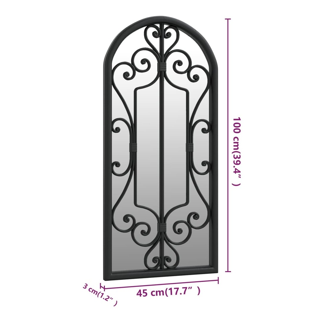 Miroir Noir 100x45 cm Fer pour utilisation à l'intérieur
