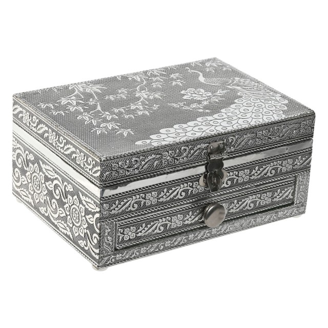 Caja-Joyero Home ESPRIT Verde Plateado Madera Aluminio 17,5 x 12,5 x 8,5 cm