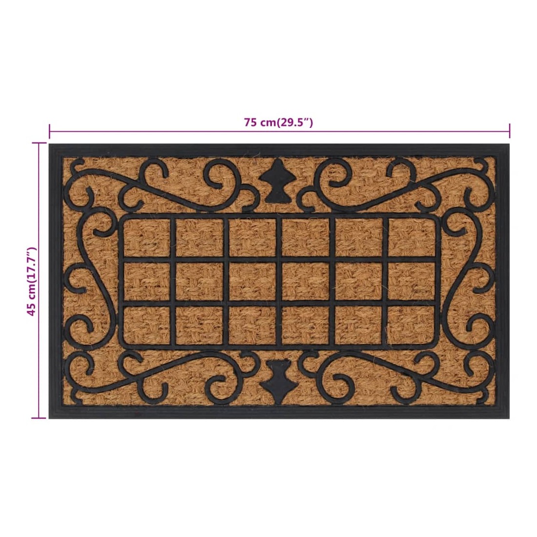 Placez ce paillasson en caoutchouc et en fibre de coco sur le sol de votre entrée et gardez la saleté à l'extérieur ! Matériau durable et naturel : ce paillasson est fabriqué en caoutchouc souple, amortissant les chocs et résistant à l'usure, ce qui garantit sa durabilité et sa résistance aux taches. Les fibres de coco naturelles de la surface absorbent et éliminent efficacement la saleté, la boue et les autres débris des chaussures, ce qui contribue à la propreté des sols.Support antidérapant : le support antidérapant en caoutchouc offre une stabilité et une sécurité supplémentaires, garantissant que le paillasson reste fermement en place.Facile à nettoyer et à ranger : ce tapis d'entrée est facile à nettoyer avec un aspirateur. Il est également pliable et peut être enroulé pour un rangement facile.Nombreuses applications : ce tapis de sol convient pour l'intérieur et l'extérieur, par exemple devant le porche, l'escalier, le jardin, le garage, etc.