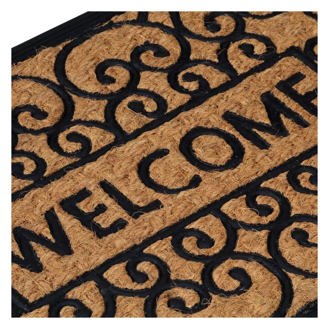 Placez ce paillasson en caoutchouc et en fibre de coco sur le sol de votre entrée et gardez la saleté à l'extérieur ! Matériau durable et naturel : ce paillasson est fabriqué en caoutchouc souple, amortissant les chocs et résistant à l'usure, ce qui garantit sa durabilité et sa résistance aux taches. Les fibres de coco naturelles de la surface absorbent et éliminent efficacement la saleté, la boue et les autres débris des chaussures, ce qui contribue à la propreté des sols.Support antidérapant : le support antidérapant en caoutchouc offre une stabilité et une sécurité supplémentaires, garantissant que le paillasson reste fermement en place.Facile à nettoyer et à ranger : ce tapis d'entrée est facile à nettoyer avec un aspirateur. Il est également pliable et peut être enroulé pour un rangement facile.Nombreuses applications : ce tapis de sol convient pour l'intérieur et l'extérieur, par exemple devant le porche, l'escalier, le jardin, le garage, etc.
