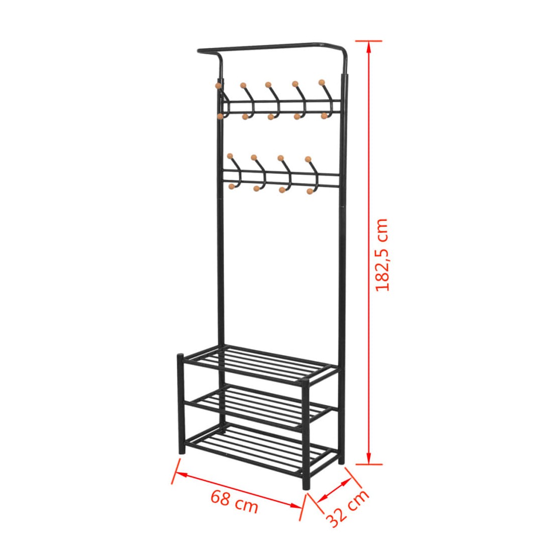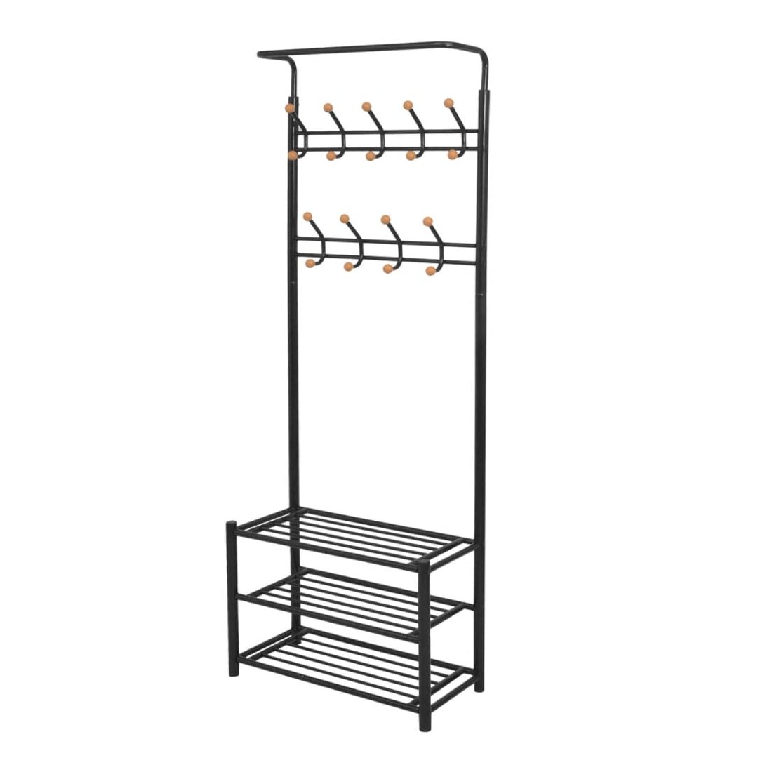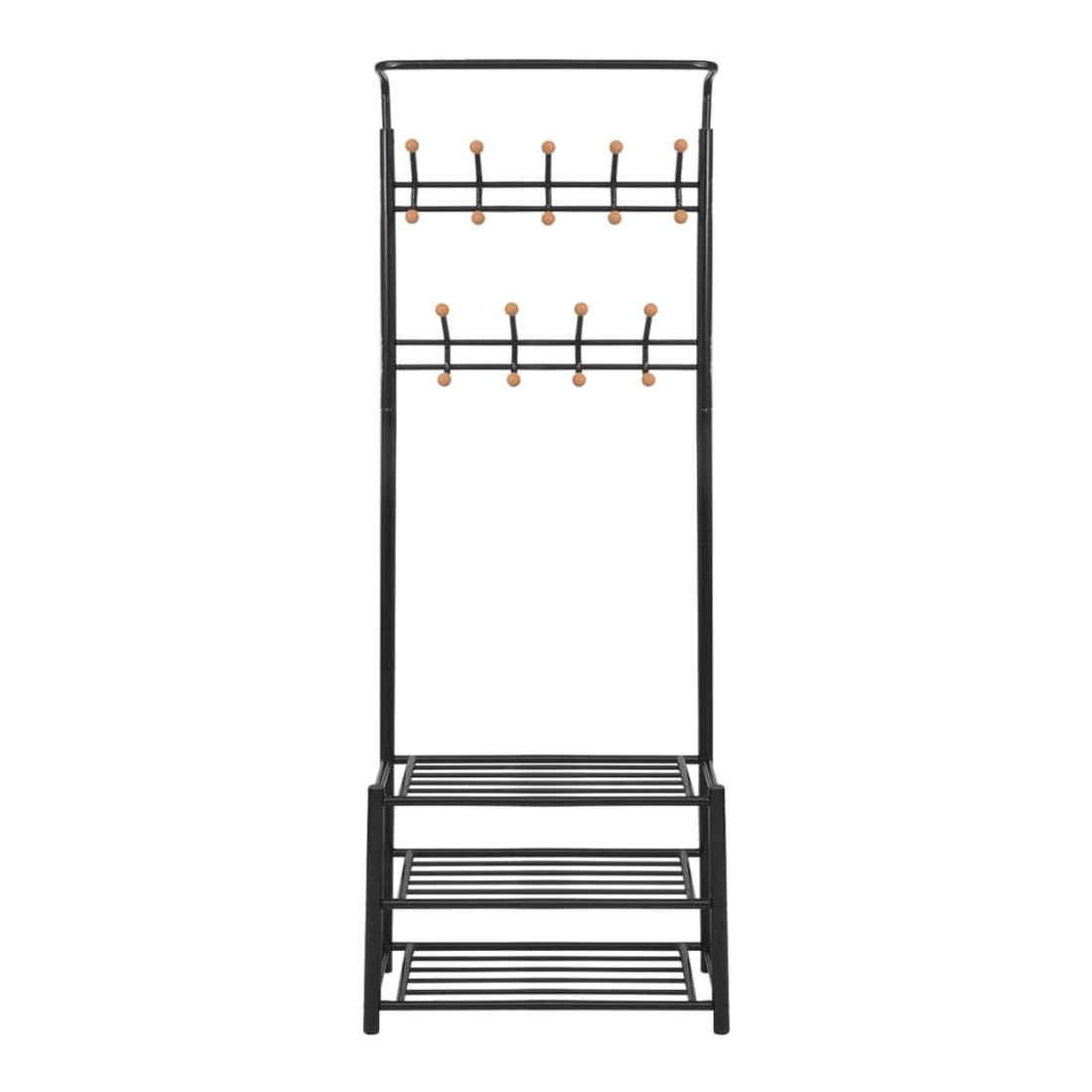 Ce porte-manteau offrira une solution de rangement rapide, pratique et portable pour accrocher vos manteaux, écharpes, chapeaux, etc. Les étagères inférieures robustes peuvent être utilisées pour ranger vos chaussures ou d'autres accessoires de façon ordonnée. Avec un design simple mais élégant, le porte-manteau s'accordera avec n'importe quel décor intérieur. L'assemblage est facile.