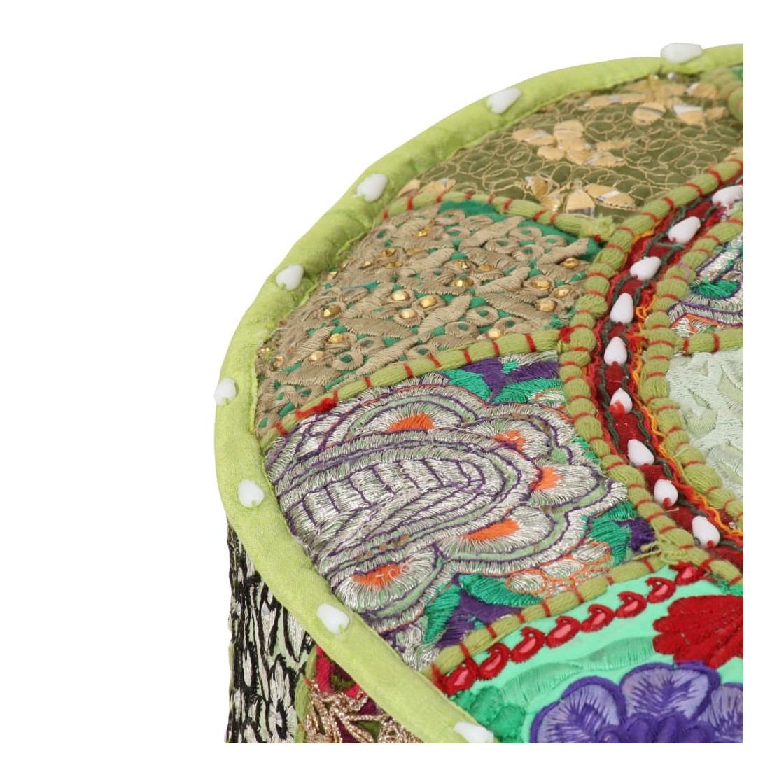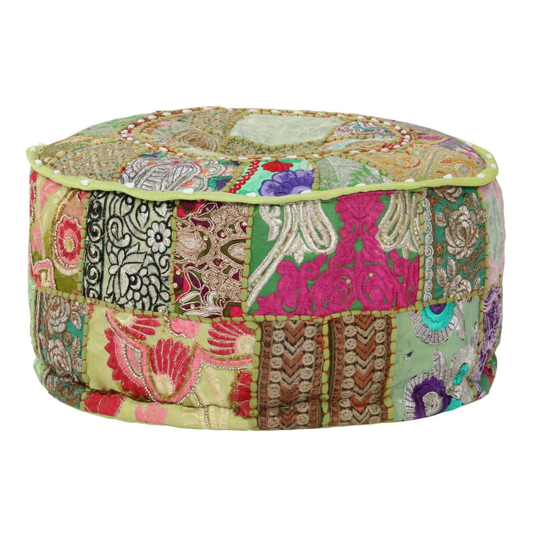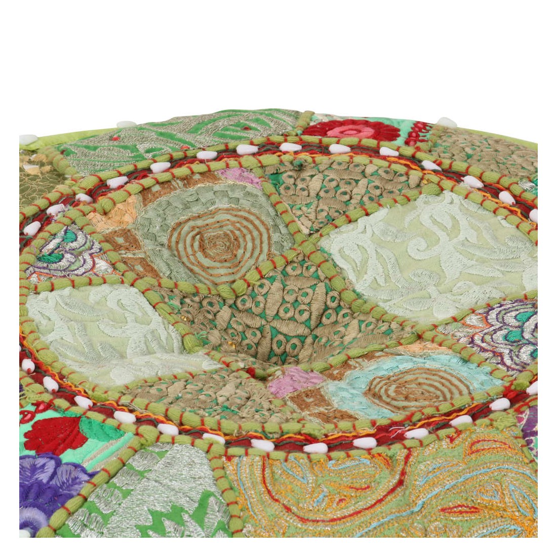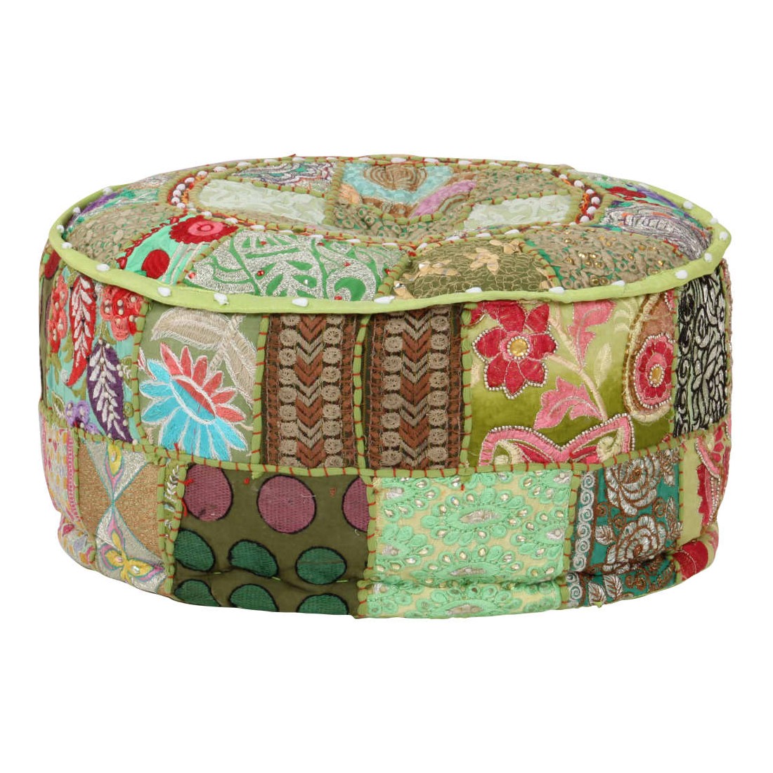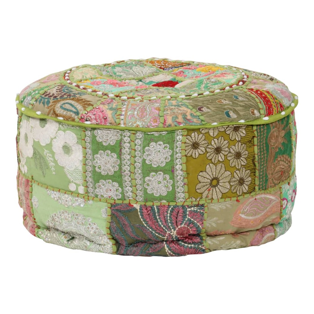 Pouf rond en coton fait à la main 40 x 20 cm Vert