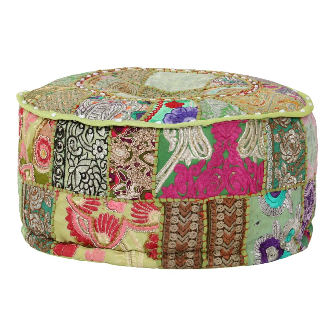 Profitez d'un moment de détente avec notre pouf fait à la main à l'aspect vintage ! Avec son design en patchwork, il attirera tous les regards dans tous les intérieurs. Ce pouf est fait à la main en 100 % coton et rembourré pour le rendre doux et confortable. Il est parsemé de broderies exotiques exquises pour apporter un style indien à votre intérieur. Placez le pouf devant un canapé ou un fauteuil pour créer une ambiance agréable dans n'importe quelle pièce. Veuillez noter que des légères différences entre chaque pièce peuvent être trouvées en raison de la nature faite à la main du produit.