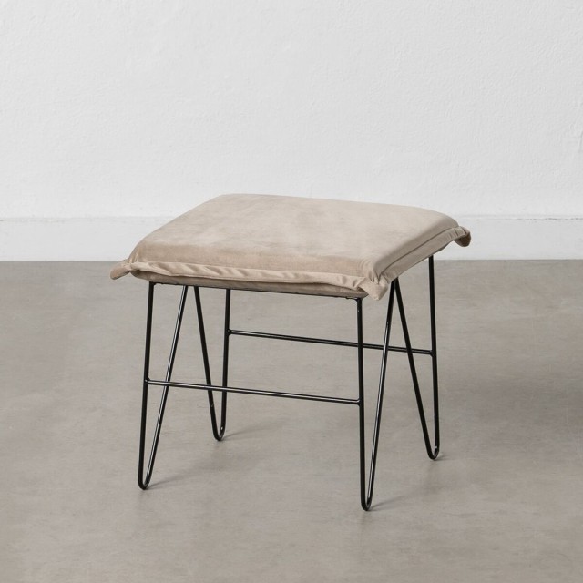 Puff Tejido Sintético Beige Metal 40 x 40 x 35 cm