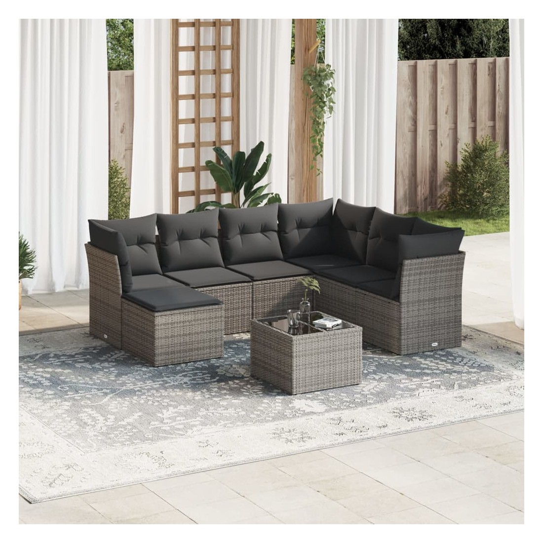 Cet ensemble de canapés de jardin est le complément parfait de votre arrière-cour, terrasse ou patio, offrant un espace confortable et accueillant pour discuter avec la famille et les amis ou simplement se détendre et profiter de l'extérieur. Matériau durable : la résine tressée, également connue sous le nom de poly rotin, est un matériau synthétique solide et nécessitant peu d'entretien qui ressemble au rotin naturel. Il est léger, facile à nettoyer et couramment utilisé pour les meubles d'extérieur en raison de sa durabilité et de ses propriétés de résistance aux intempéries.Expérience d'assise confortable : ce mobilier d'extérieur, doté de coussins épais, offre une expérience d'assise confortable.Dessus en verre : le dessus de la table d'extérieur est fabriqué en verre trempé solide et durable, ce qui le rend facile à nettoyer avec un chiffon humide et ajoute une touche d'élégance à votre espace extérieur.Housse amovible et lavable : ces coussins de siège sont dotés de housses amovibles pour un lavage et un entretien faciles.Conception modulaire : cet ensemble de meubles d'extérieur a une conception modulaire, ce qui le rend complètement flexible et facile à déplacer, afin que vous puissiez créer un agencement de meubles d'extérieur personnalisé. Bon à savoir :Pour que vos meubles d'extérieur restent beaux, nous vous recommandons de les protéger avec une housse imperméable.