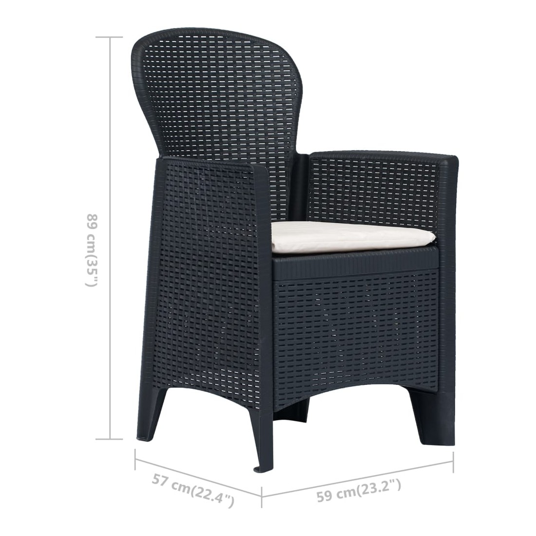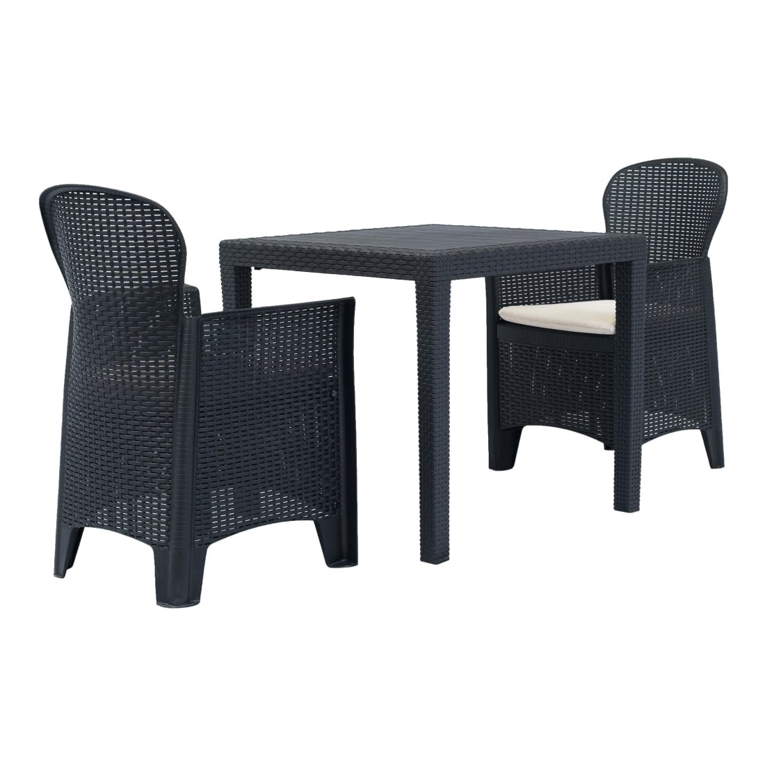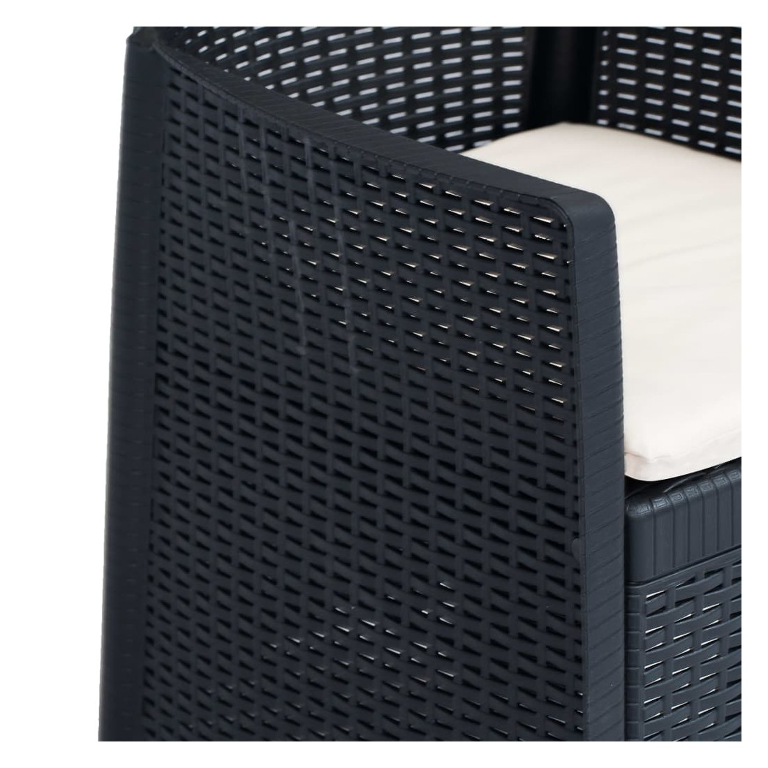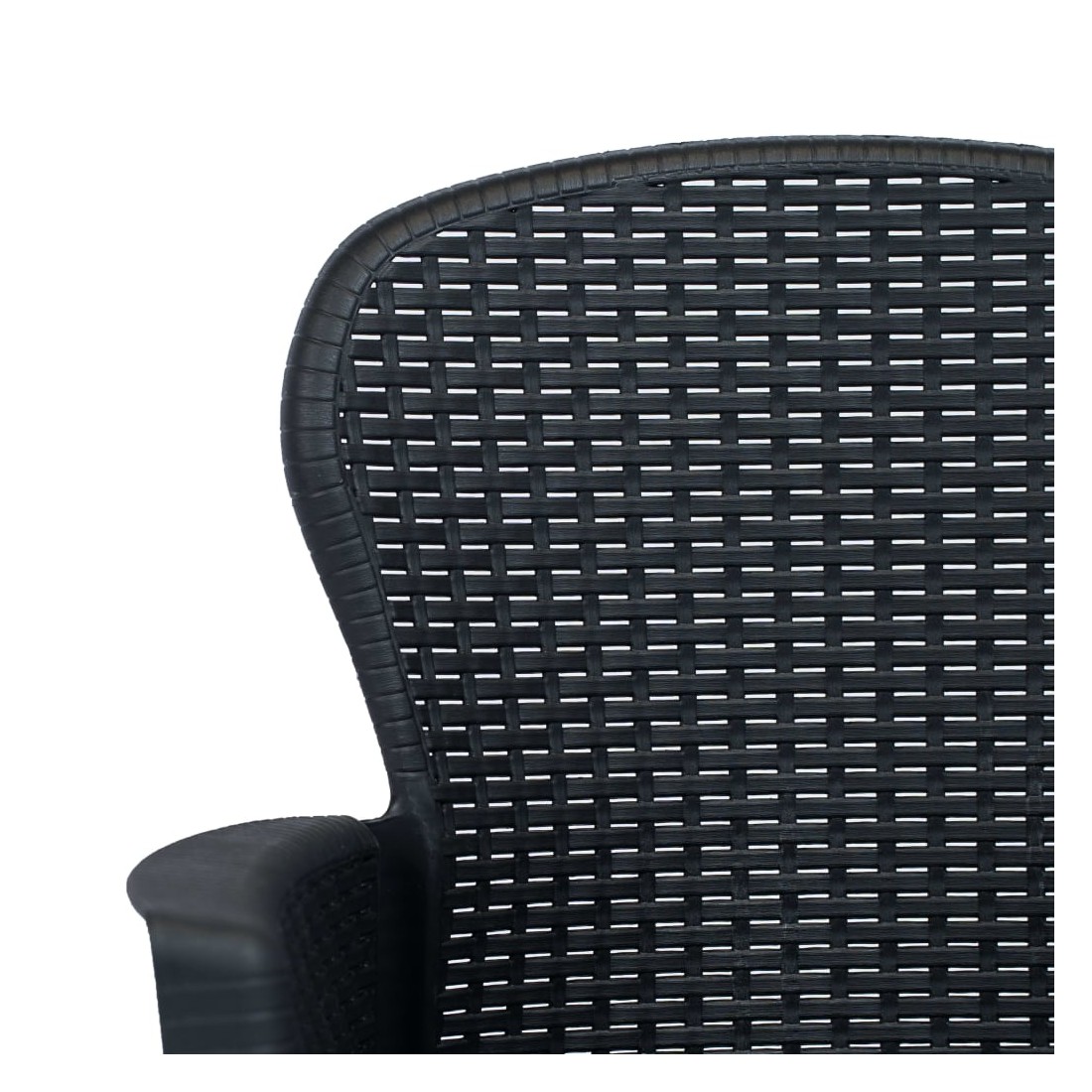 Notre ensemble de bistro en plastique sera un excellent choix pour les repas en plein air dans le jardin, sur la terrasse ou au camping. L'ensemble de bistro à l'aspect de rotin est en plastique solide, ce qui le rend durable ainsi que résistant aux intempéries et facile à nettoyer. De plus, son design à l'aspect du rotin ajoute une touche de charme naturel à votre espace de vie extérieur. Le mobilier de jardin est également léger et facile à déplacer. La table et les chaises de jardin sont faciles à assembler. La livraison comprend 1 table, 2 chaises et 2 coussins de siège.