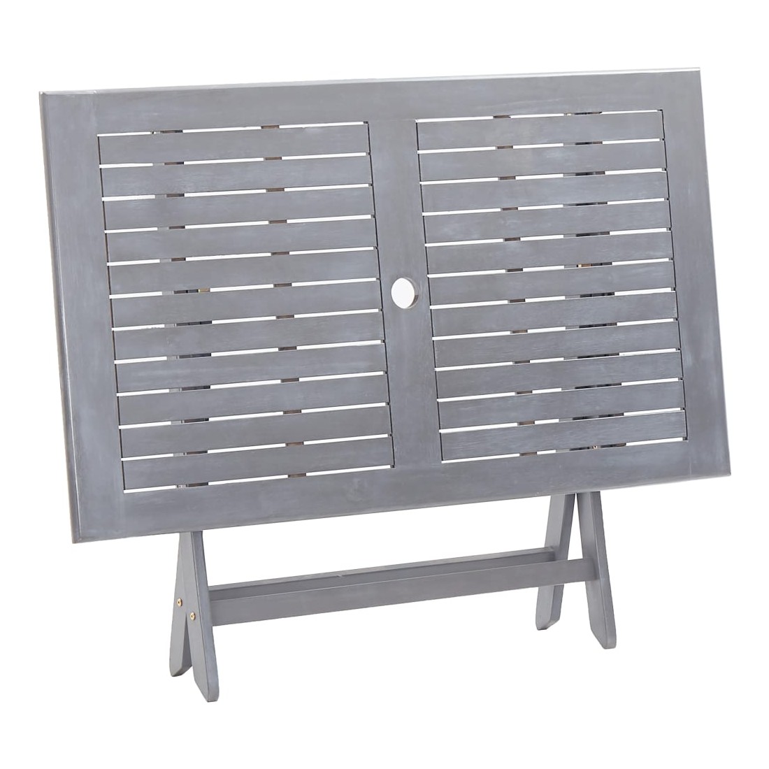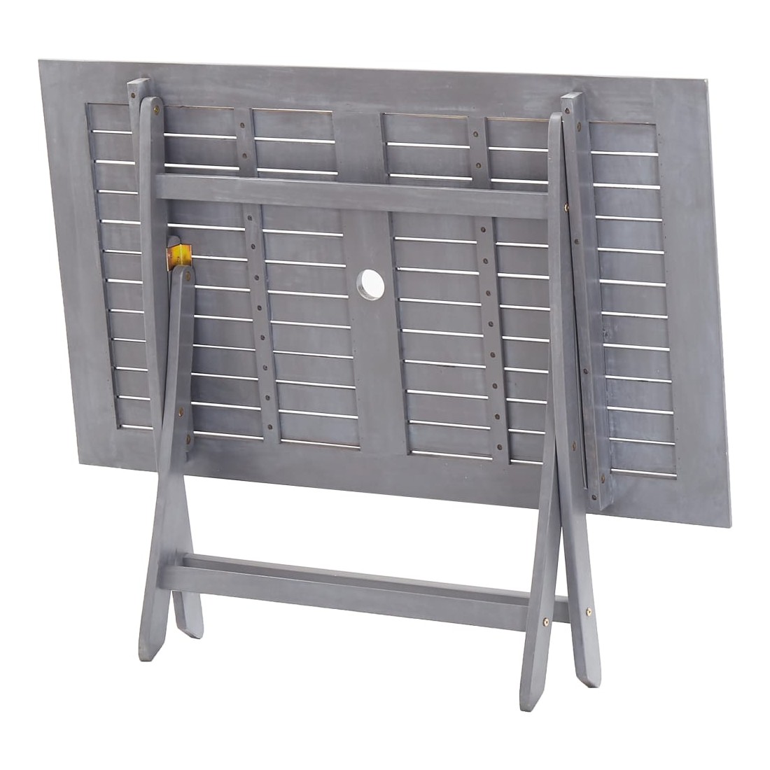 Cet ensemble de salle à manger de jardin, pratique mais élégant, convient parfaitement à une utilisation extérieure et constitue un point central attrayant pour votre jardin, terrasse ou patio. La table et les chaises sont en bois d'acacia massif avec un lavage gris. Par conséquent, elles sont résistantes aux intempéries, durables et faciles à nettoyer avec un chiffon humide. En raison de la structure en bois robuste, cet ensemble est très stable et sûr. Il vous procurera confort et grande commodité pour passer du temps avec votre famille et vos amis. De plus, la table et les chaises peuvent être facilement repliées pour un rangement et un transport faciles lorsqu'elles ne sont pas utilisées. La livraison comprend 1 table à manger et 4 chaises de salle à manger.