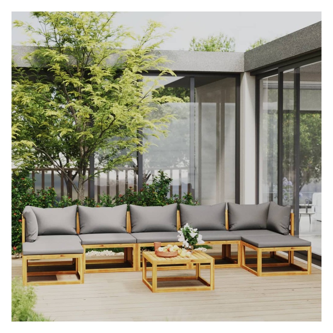 Salon de jardin 8 pcs avec coussin Bois d'acacia solide