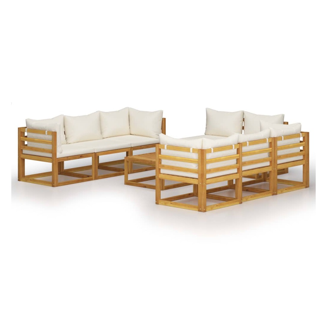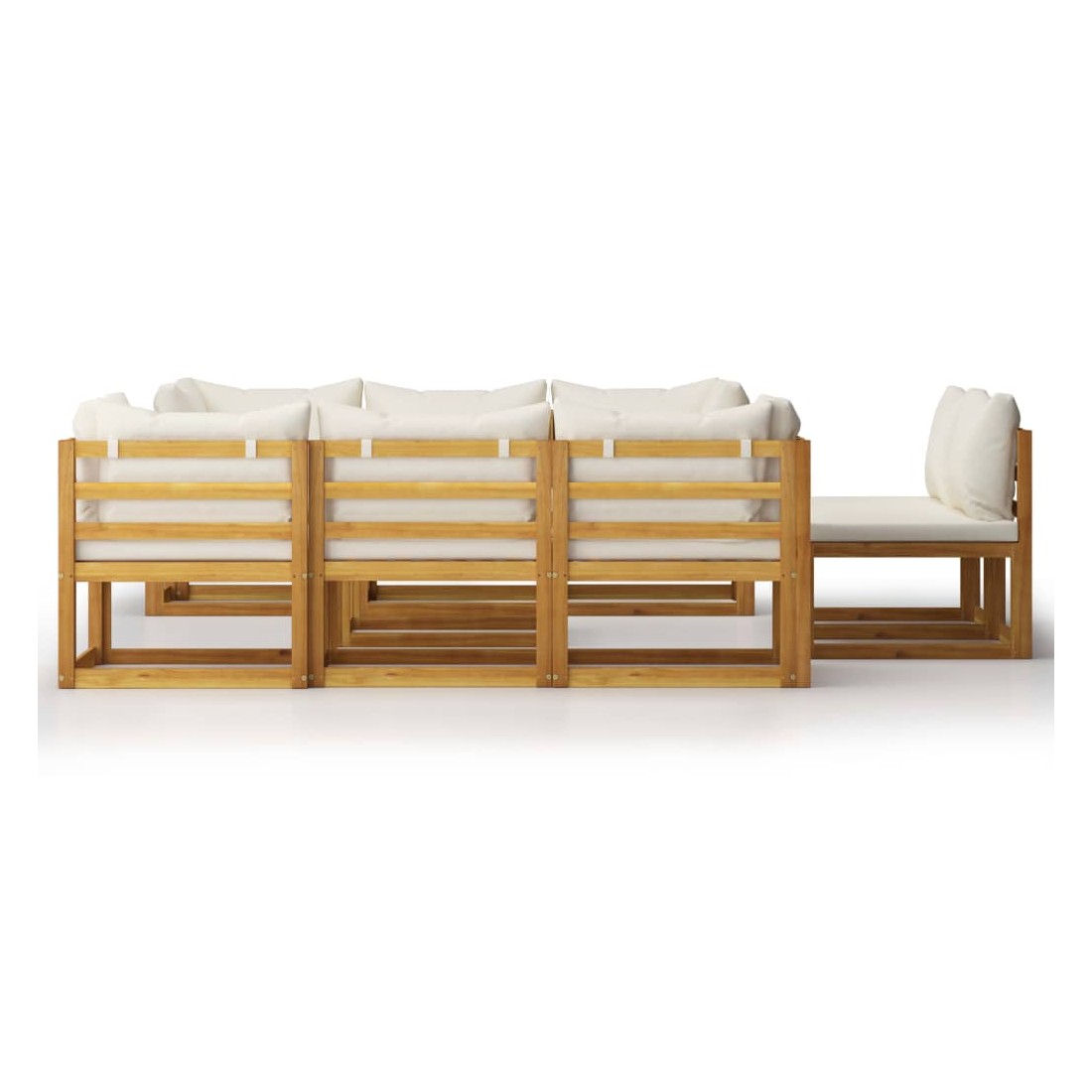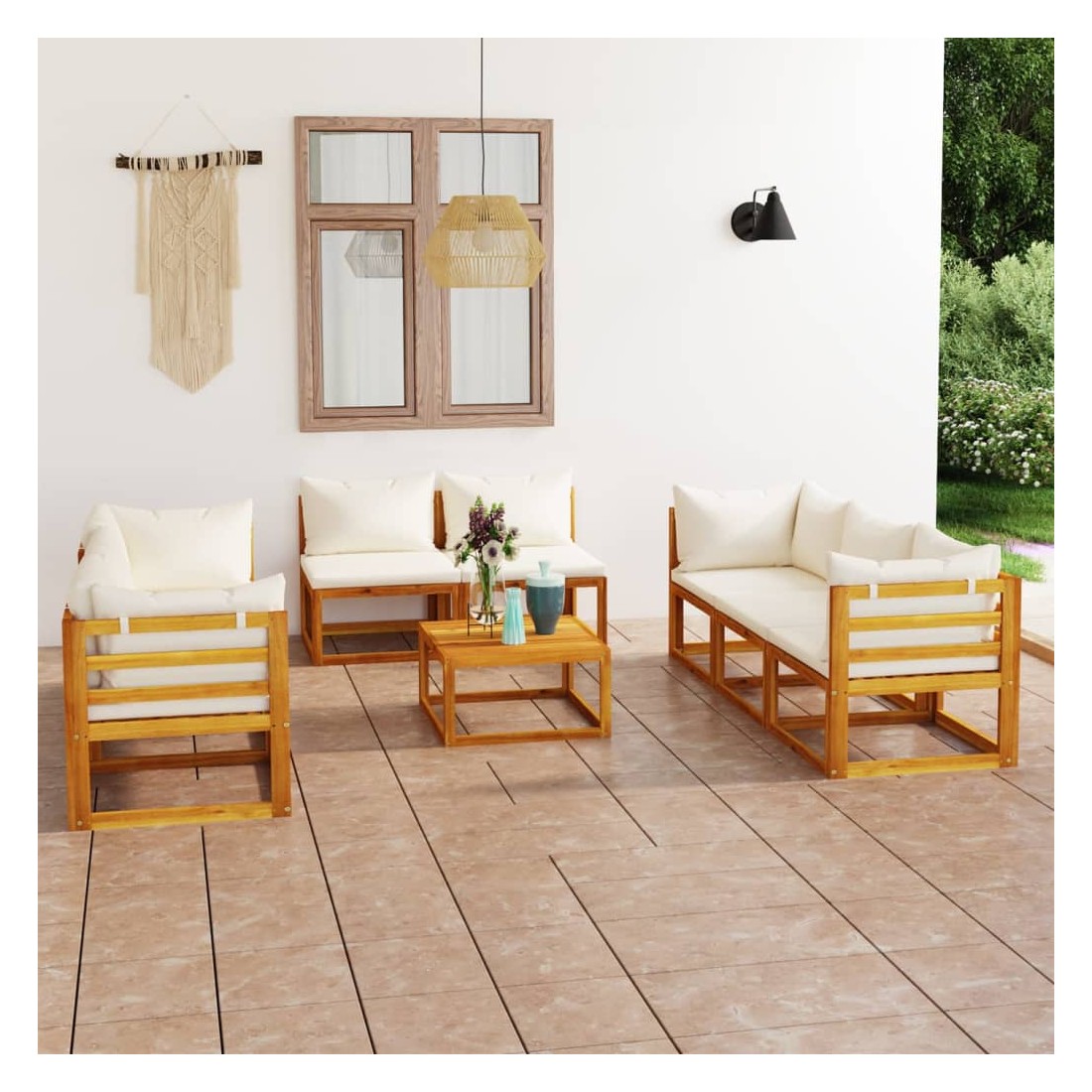 Ce mobilier de jardin en bois est une combinaison parfaite de style et de fonctionnalité. Avec cela dans votre jardin, vous pouvez passer du temps relaxant et apaisant avec votre famille et vos amis. Doté d'un cadre en bois d'acacia massif, l'ensemble de canapé est solide, robuste et durable; et sa finition à l'huile rend l'ensemble de canapé adapté à une utilisation en extérieur. Les coussins d'assise et de dossier amovibles sont épaississement rembourrés, afin d'offrir un grand confort d'assise. Une table basse au design à lattes unique est également incluse. De plus, grâce à sa conception modulaire, toutes les pièces peuvent être arrangées et personnalisées selon vos besoins. Cet ensemble de sièges sera sûrement le point de mire de votre jardin ou patio.