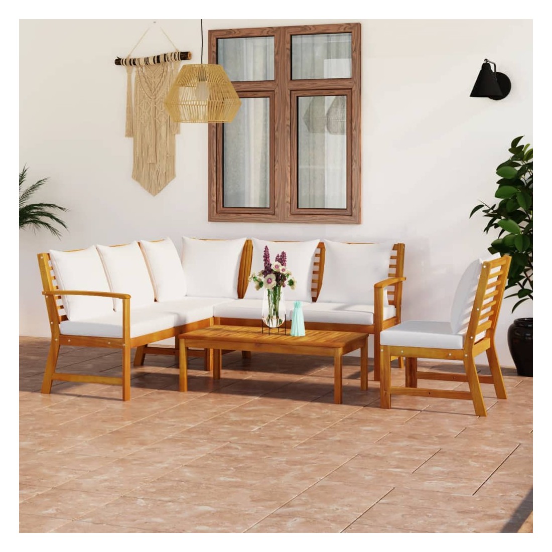 Salon de jardin 5 pcs avec coussin Crème Bois d'acacia solide