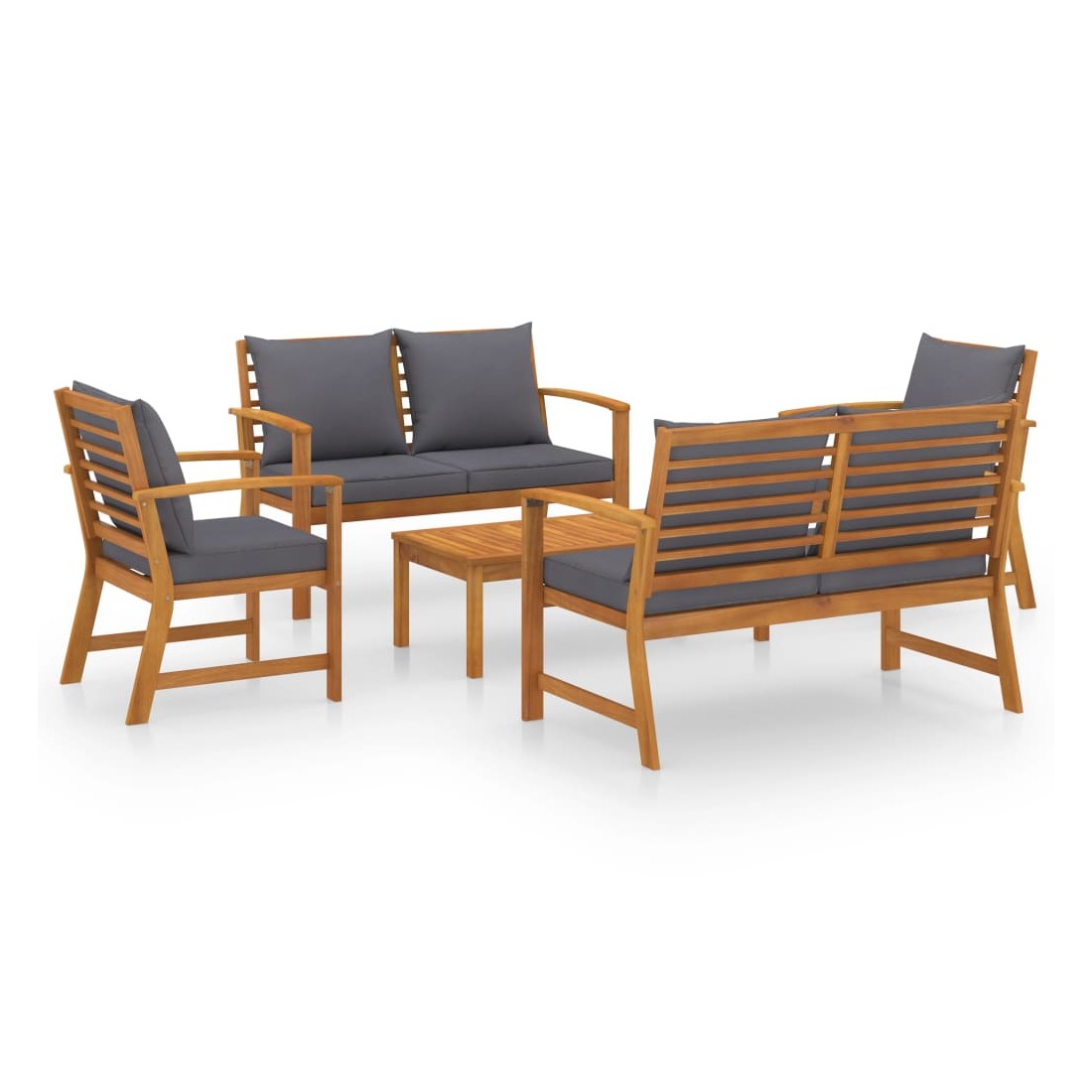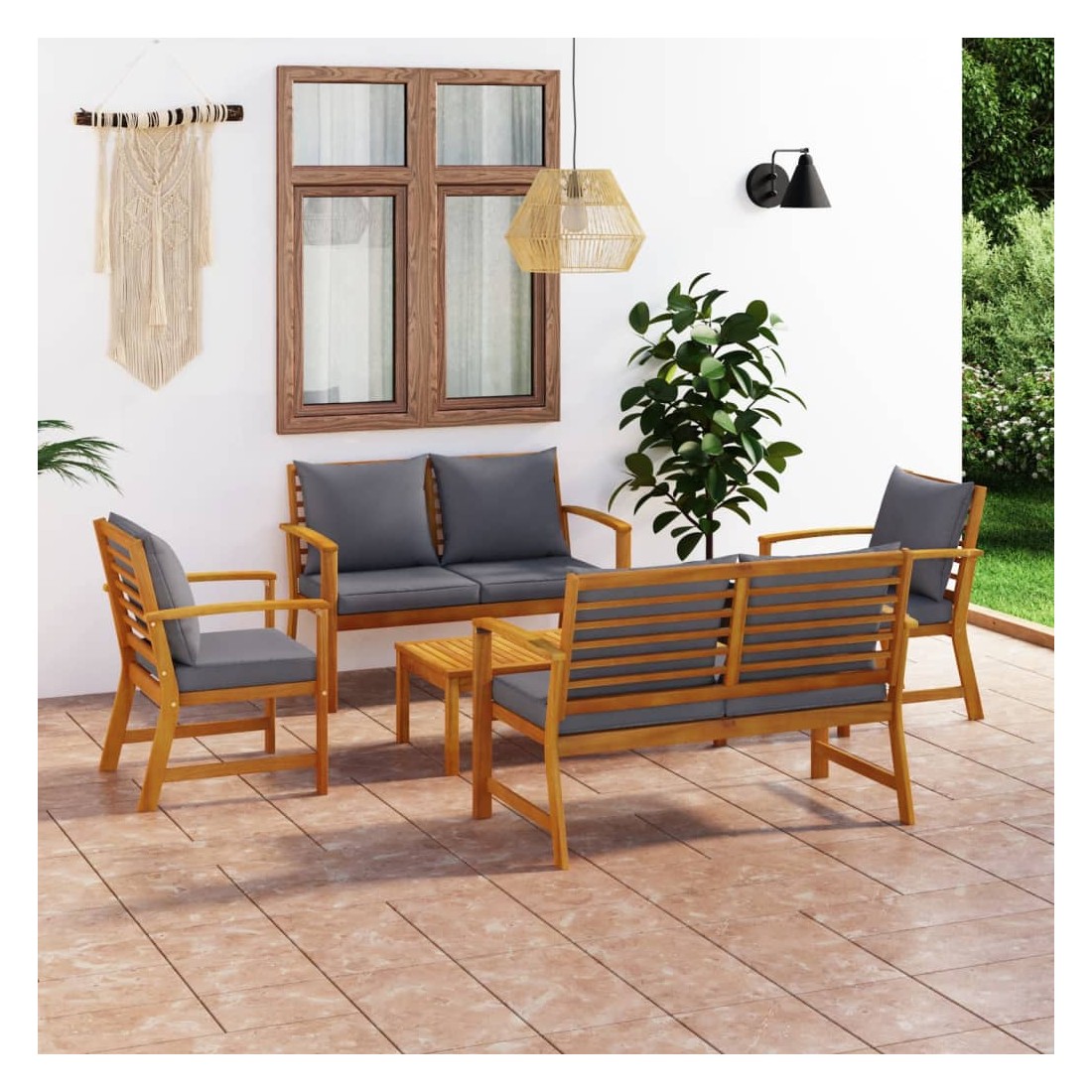 Salon de jardin 5 pcs avec coussin Bois d'acacia solide