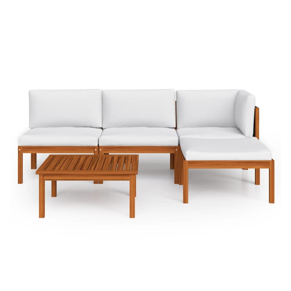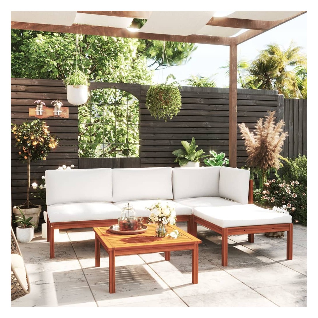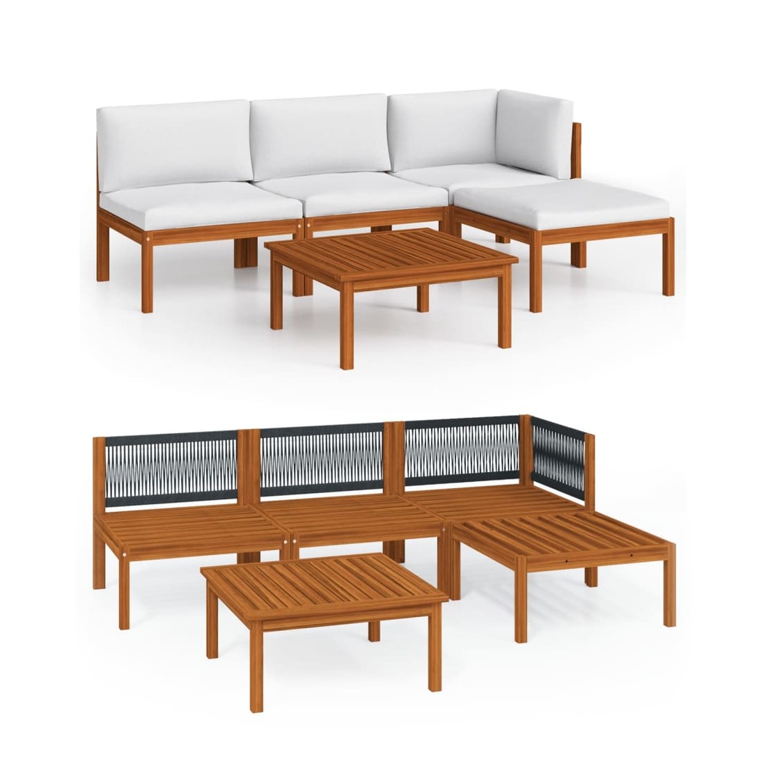 Salon de jardin 5 pièces avec coussins, bois d'acacia crème et corde