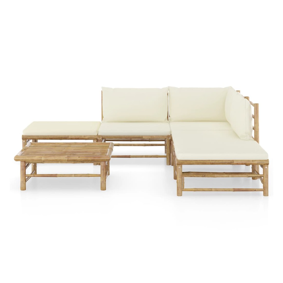 Profitez de votre espace extérieur et détendez-vous avec vos amis et votre famille dans votre espace extérieur avec cet élégant ensemble de salon de jardin en bambou ! Matériau naturel : ce salon de jardin est en bambou, ce qui le rend robuste et facile à nettoyer.Coussins confortables : les coussins bien rembourrés ajoutent un confort supplémentaire à votre temps de détente. Les housses de coussin sont amovibles et lavables avec des fermetures éclair.Léger : avec une construction légère, cet ensemble de salon d'extérieur est facile à déplacer.Conception modulaire : grâce à la conception modulaire, vous pouvez placer l’ensemble dans n’importe quel arrangement selon vos préférences. Bon à savoir :Pour que vos meubles d'extérieur restent beaux, nous vous recommandons de les protéger avec une housse imperméable.