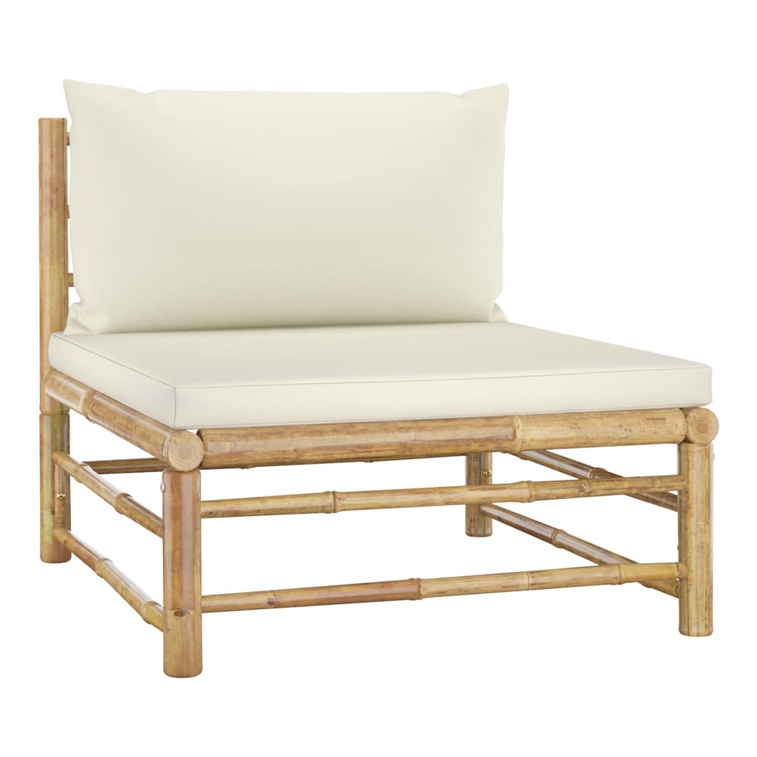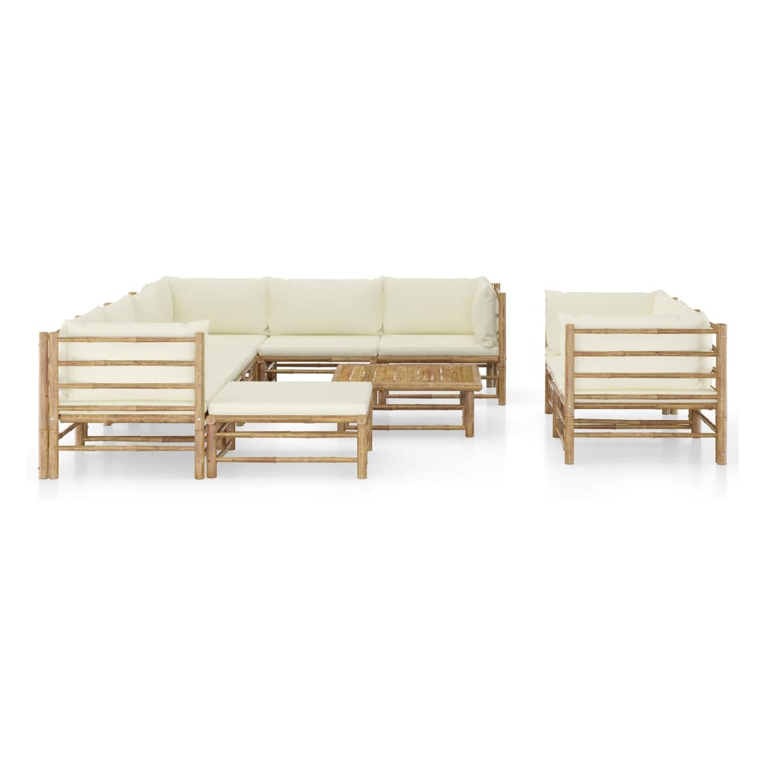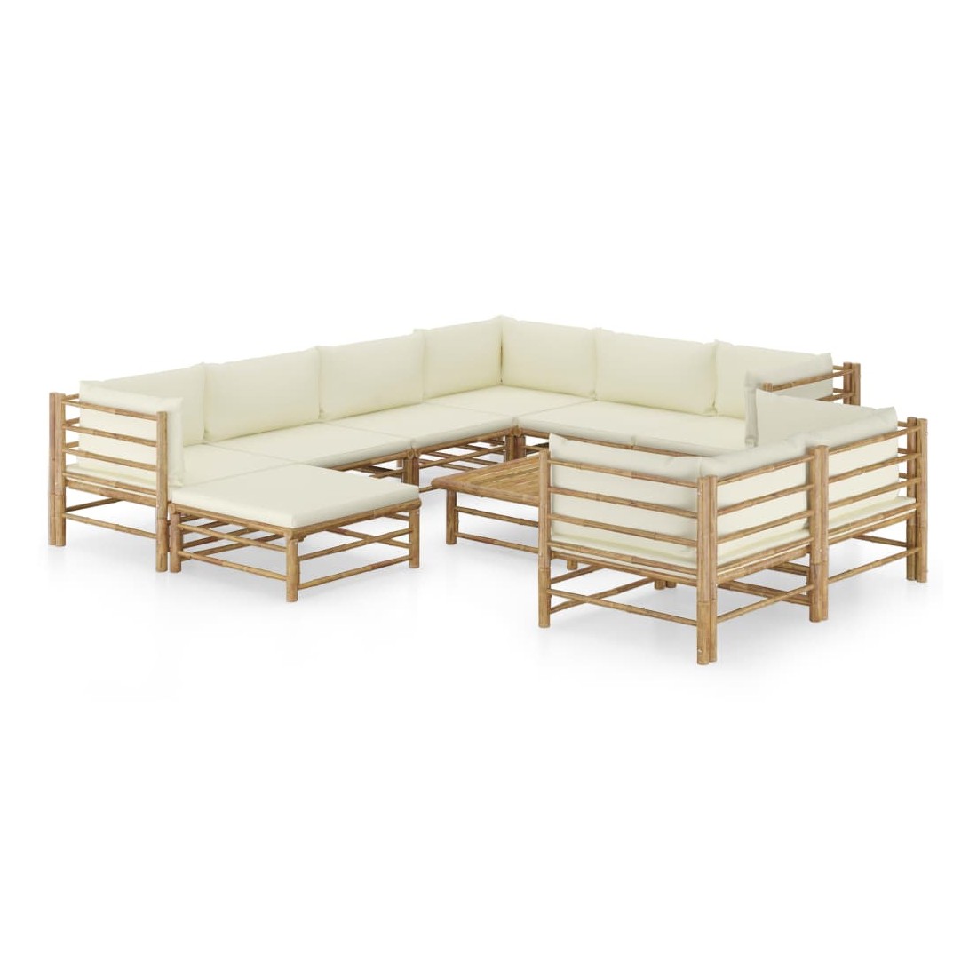 Salon de jardin 10 pcs avec coussins blanc crème bambou