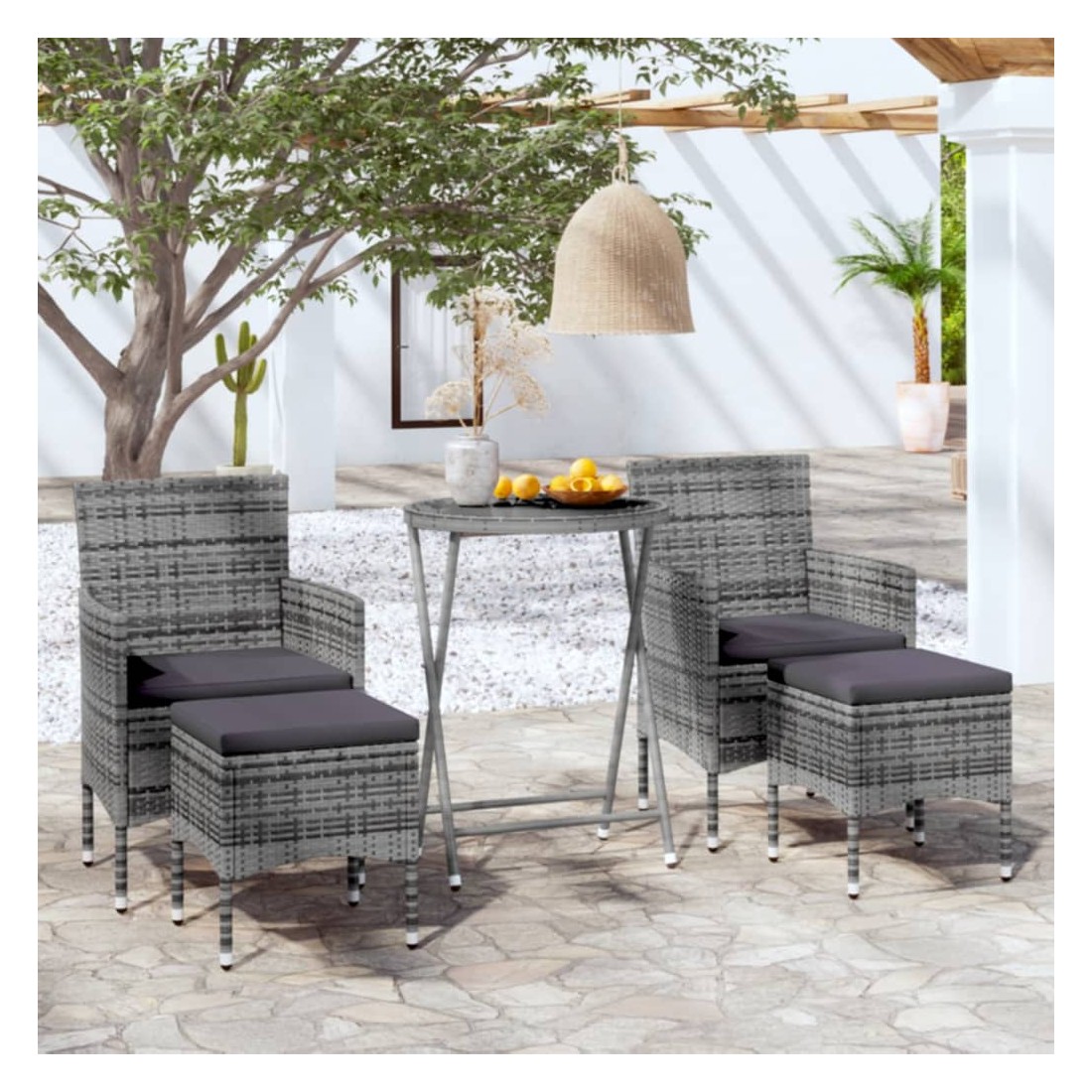 Cet ensemble élégant de bistro de jardin vous permet de passer des moments agréables et confortables avec votre famille et vos amis. Avec un cadre en acier enduit de poudre recouvert de résine tressée résistante aux intempéries avec protection UV, la table et les chaises sont durables et stables. Conçues avec un dossier et des accoudoirs incurvés, les chaises vous offrent du confort. Les coussins sont inclus pour plus de confort et la housse à fermeture éclair est amovible pour un lavage facile. Le dessus de table est en verre trempé renforcé avec un support résistant, facile à nettoyer et à entretenir. Les deux repose-pieds vous offrent également des places d'assise supplémentaires. De plus, la construction légère rend chaque pièce facile à déplacer, à réorganiser et à transporter. Remarque : afin de prolonger la durée de vie des meubles d'extérieur, nous vous recommandons de les protéger avec une housse imperméable.