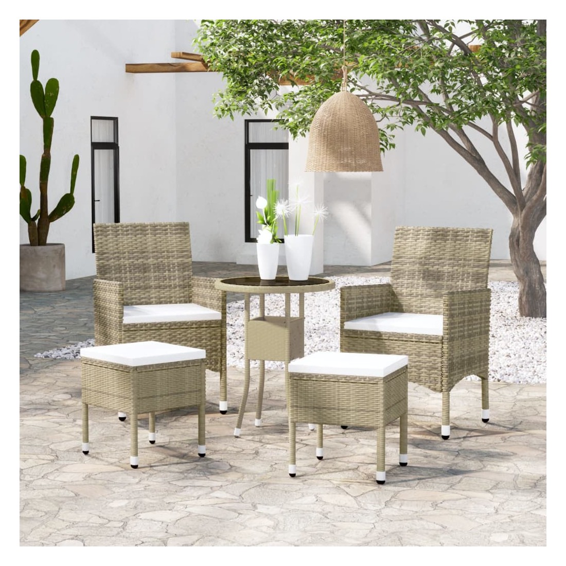 - Matériau : résine tressée, acier enduit de poudre, verre trempé