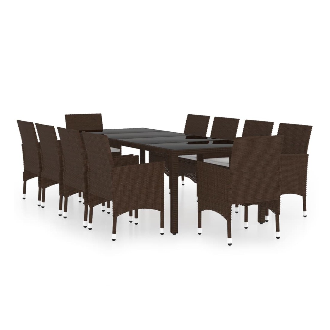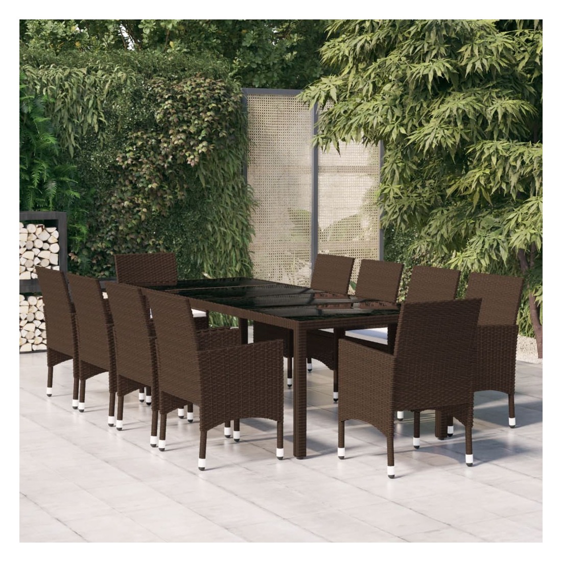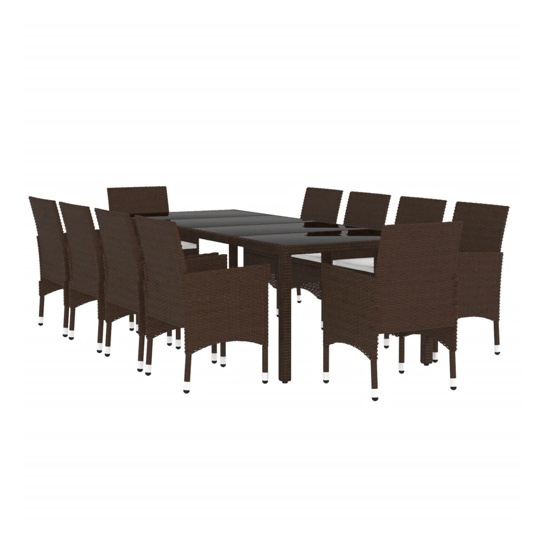 Ensemble à Manger de jardin 11pcs poly rotin et bois solide