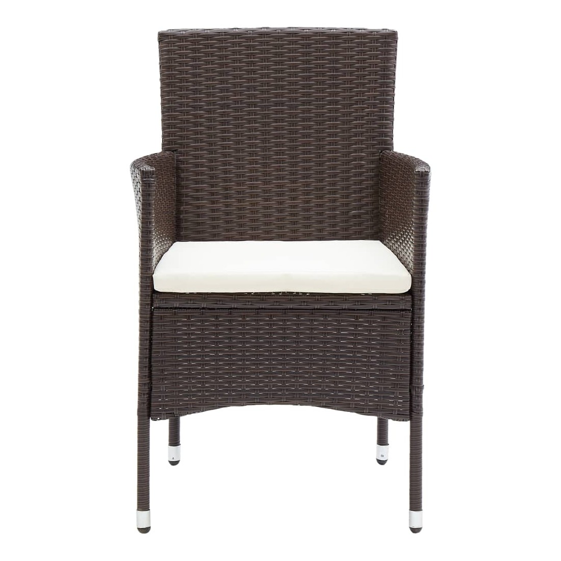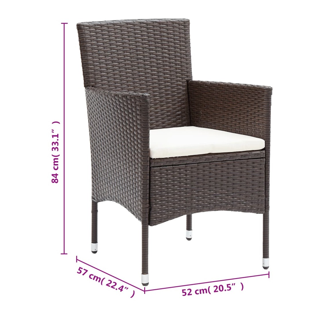 Profitez d'un bon repas ou d'un thé l'après-midi dans votre espace extérieur avec cet ensemble de salle à manger de jardin ! Ayant un design élégant, il deviendra le point central de votre jardin et de votre terrasse ! Matériau de qualité supérieure : cadres en acier robuste enveloppés de résine tressée tissée à la main résistante aux intempéries, cet ensemble de salle à manger d'extérieur est résistant à la rouille et à la moisissure, ce qui peut fournir des années de détente de qualité.Structure stable et solide : les cadres en acier garantissent la solidité et la stabilité.Chaises confortables : conçu avec un dossier incurvé et des accoudoirs, le fauteuil de jardin a une forme plus ergonomique pour un confort maximal. Des coussins sont inclus pour un soutien supplémentaire et la housse avec fermeture éclair est amovible pour un lavage facile. Remarque :Afin de prolonger la durée de vie de votre mobilier d'extérieur, nous vous recommandons de le protéger avec une housse imperméable.