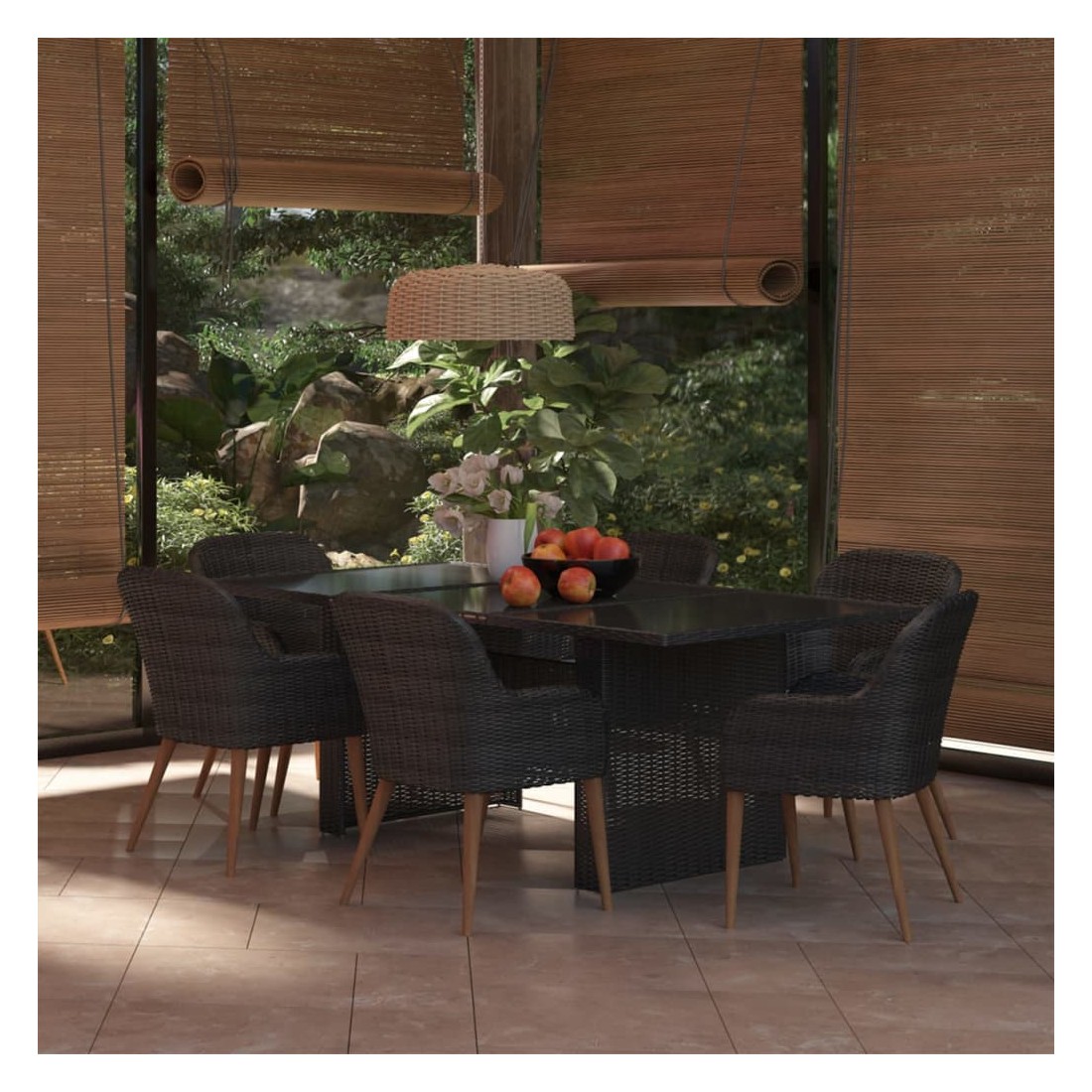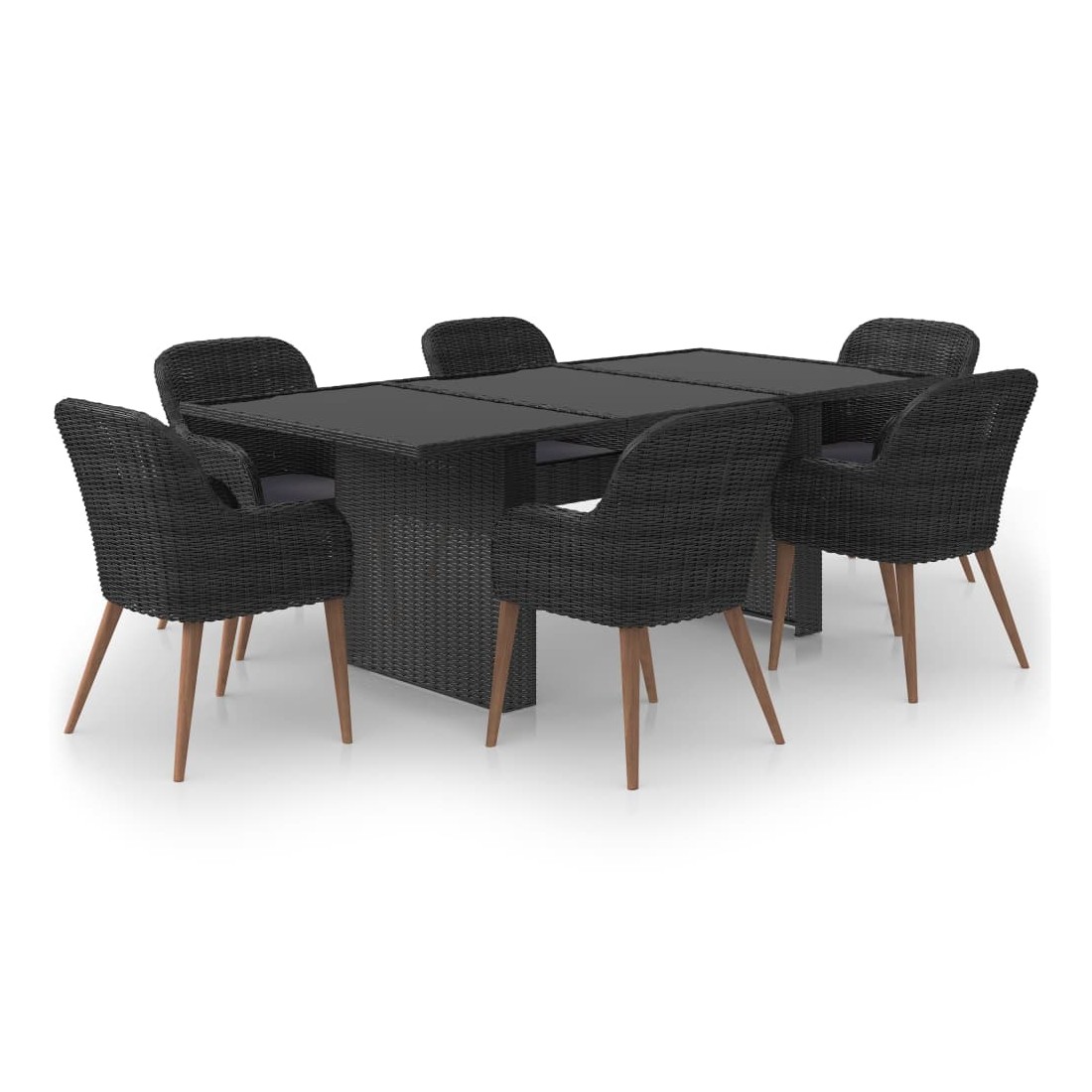 Ensemble à manger de jardin 7 pcs Résine tressée Noir