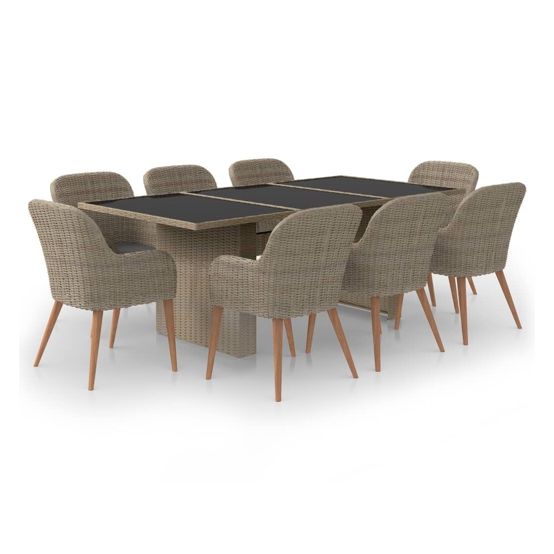 Cet ensemble de salle à manger de jardin au design élégant est un excellent choix pour dîner ou vous détendre dans le jardin ou sur la terrasse ! L'ensemble de meubles d'extérieur est doté d’un cadre solide en acier enduit de poudre qui le rend très stable et durable. Grâce à la résine tressée résistante aux intempéries, cet ensemble de salle à manger est facile à nettoyer, résistant à l'usure et convient à une utilisation quotidienne à l'extérieur. Le dessus de table en verre est également facile à nettoyer avec un chiffon humide. De plus, les coussins de siège doux inclus ajoutent également du confort supplémentaire à l'ensemble. Les housses de coussin en polyester à faible entretien peuvent être facilement retirées et lavées. Remarque : nous vous recommandons de couvrir l'ensemble pendant la pluie, la neige et le gel.